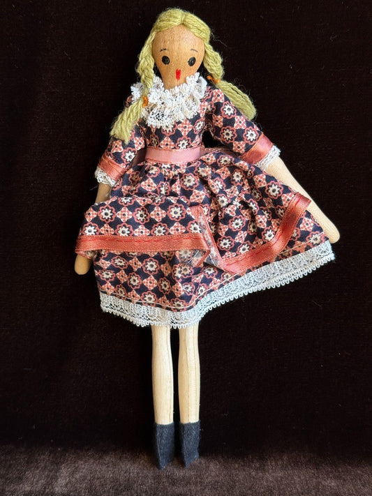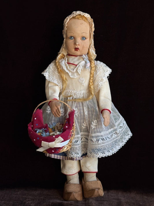 Vintage European 14” Lenci Style Felt Cloth Character Girl Doll