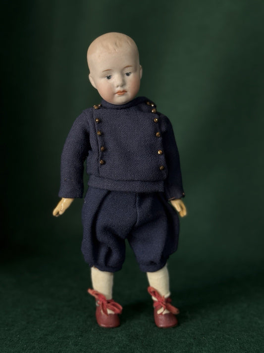 Antique German 7” Bisque Cloth Miniature Dollhouse China Doll