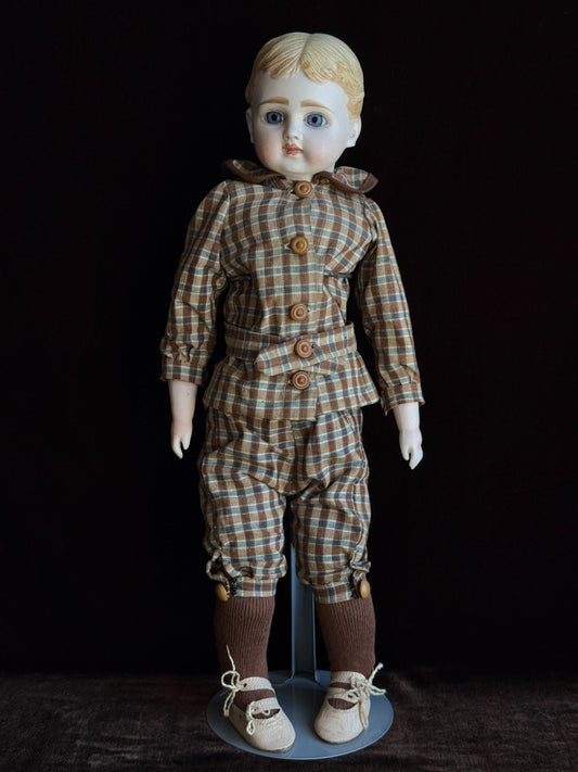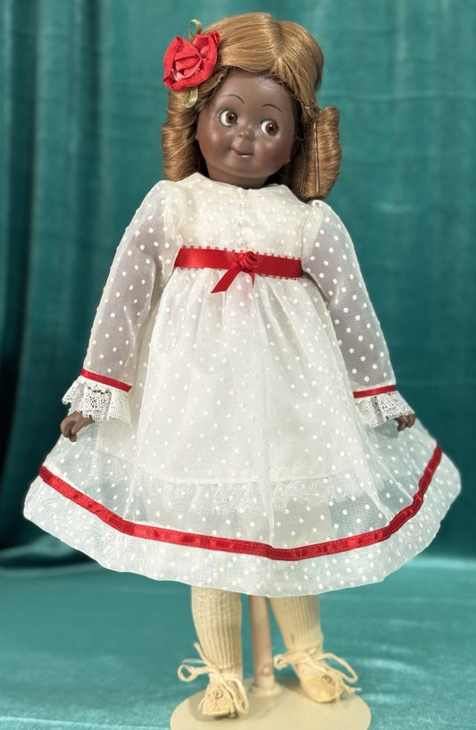 Reproduction of Antique German JDK 221 Googly Eyes 14” Dark Complexion Doll