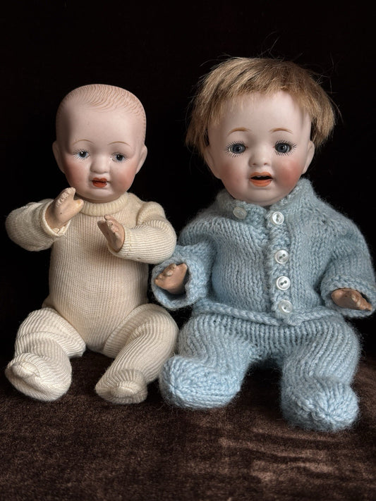 2 Miniature German/Japan Bisque Head Babies Kestner and Morimura Brothers Dolls