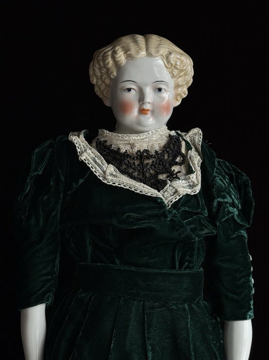 Antique German 14” Lowbrow China Shoulder Head Doll