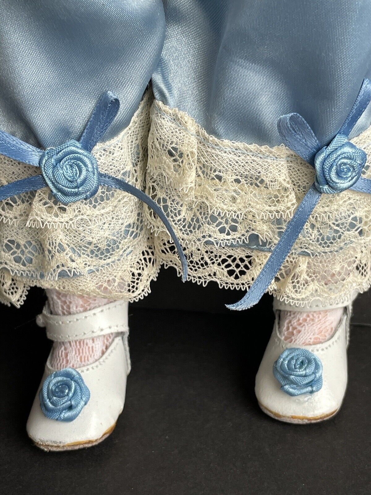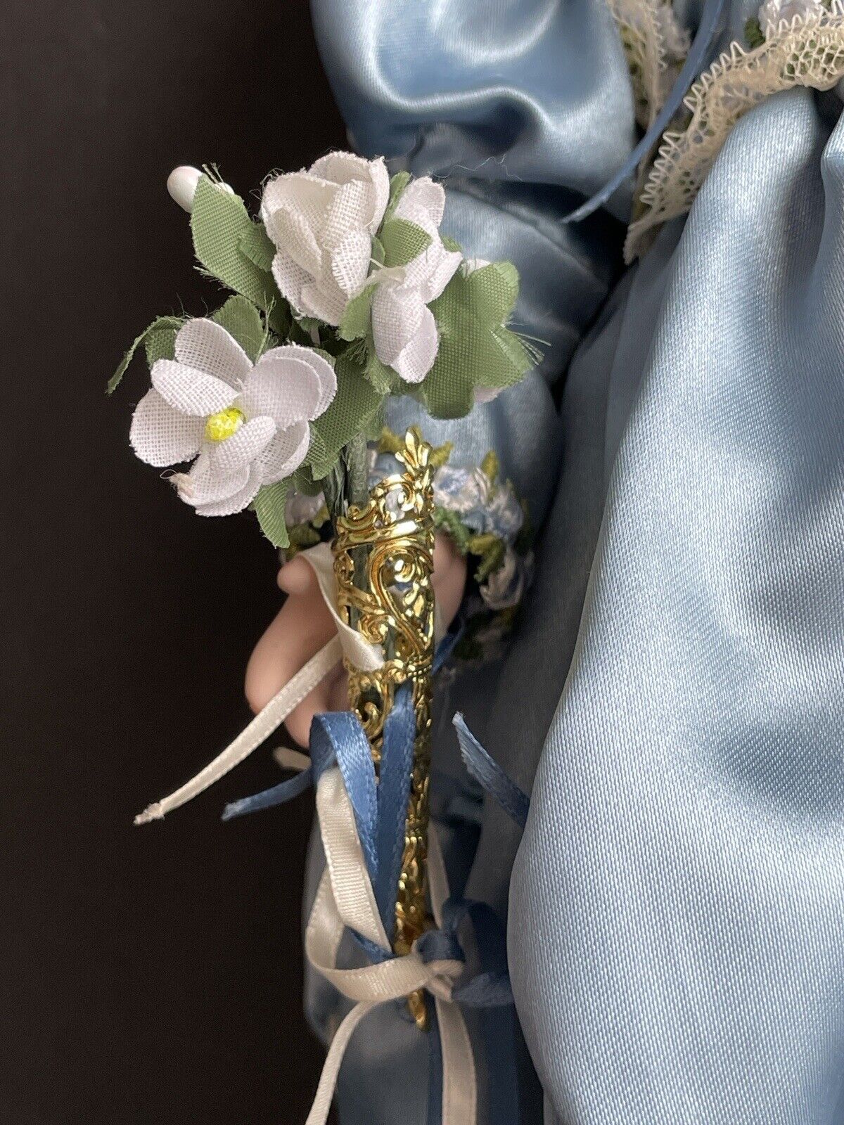 The doll comes with pantaloons, stockings, shoes and dress. Overall good condition to the clothes. Light age wear to the shoes. Bouquet is also included. Minor imperfections are possible. Please refer for the pictures for more details. No stand is included.