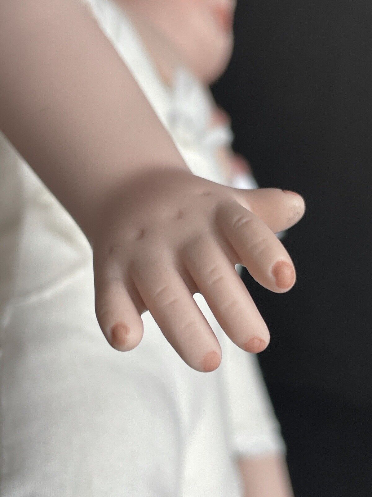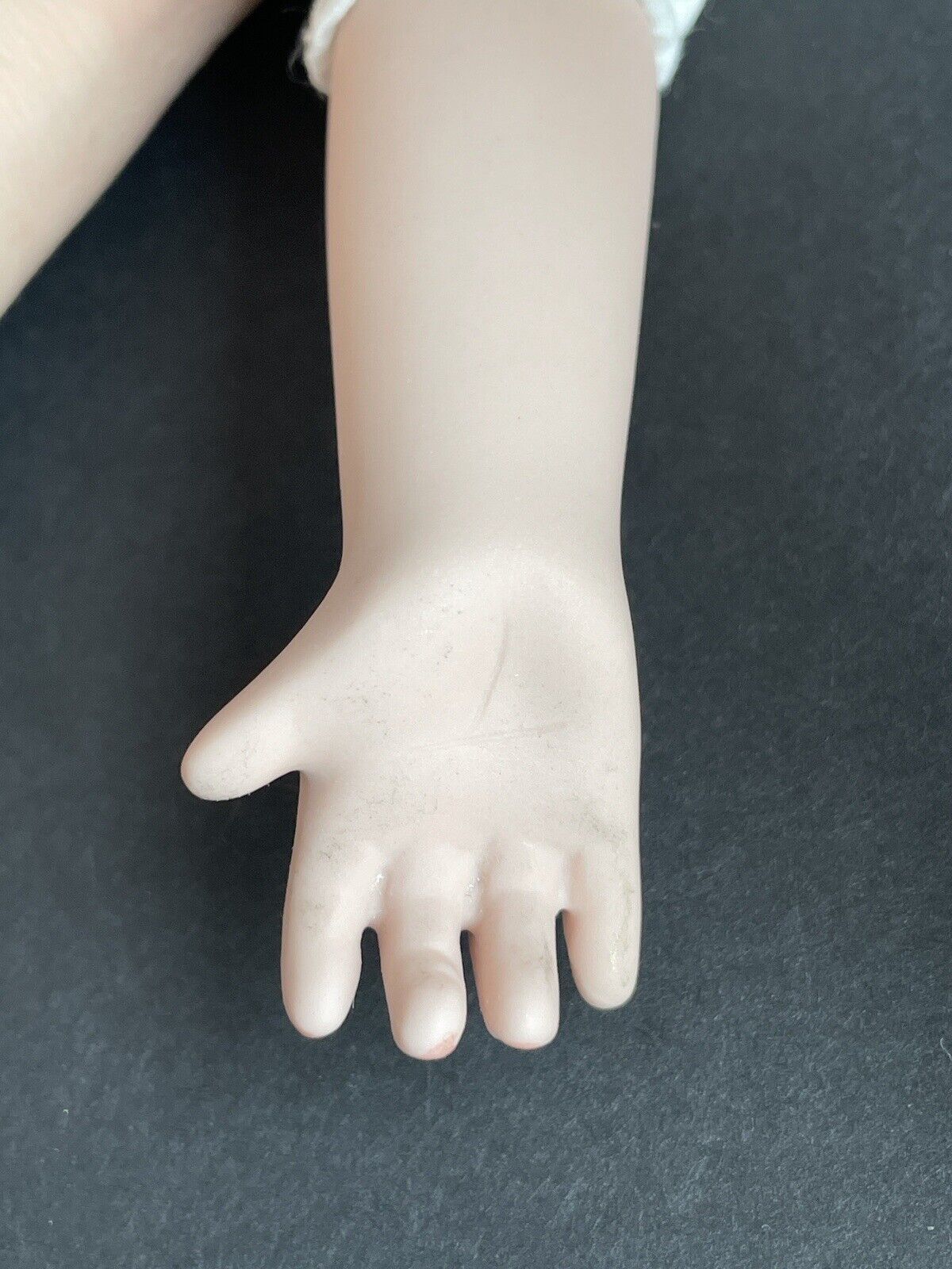 The doll is in good condition, with just some light marks. Small mold defect to the bottom part of the head.