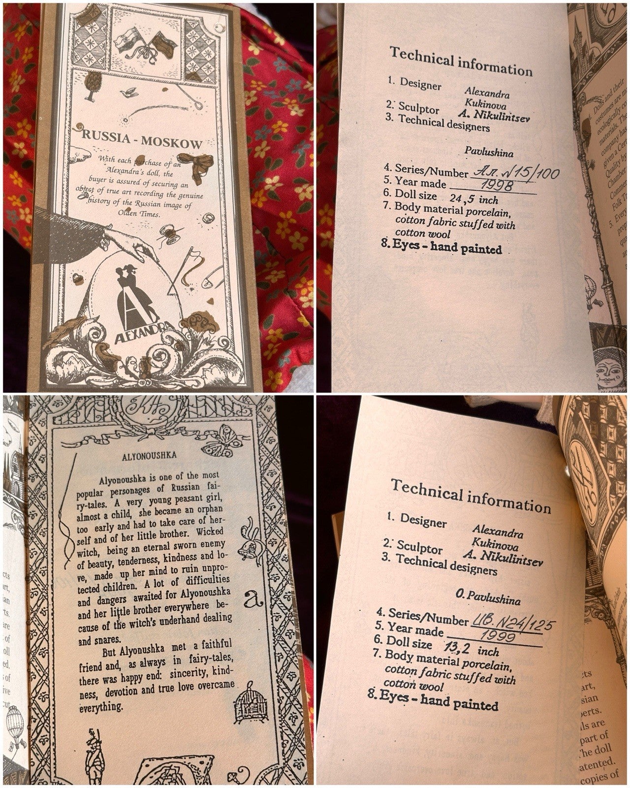 Great collectible dolls by famous doll artist! These are characters from Russian fairy tale. They are approximately 13.5" and 18". The dolls are limited edition of 100 and 125 and coming with original tags that are also certificates. Original boxes are also included.