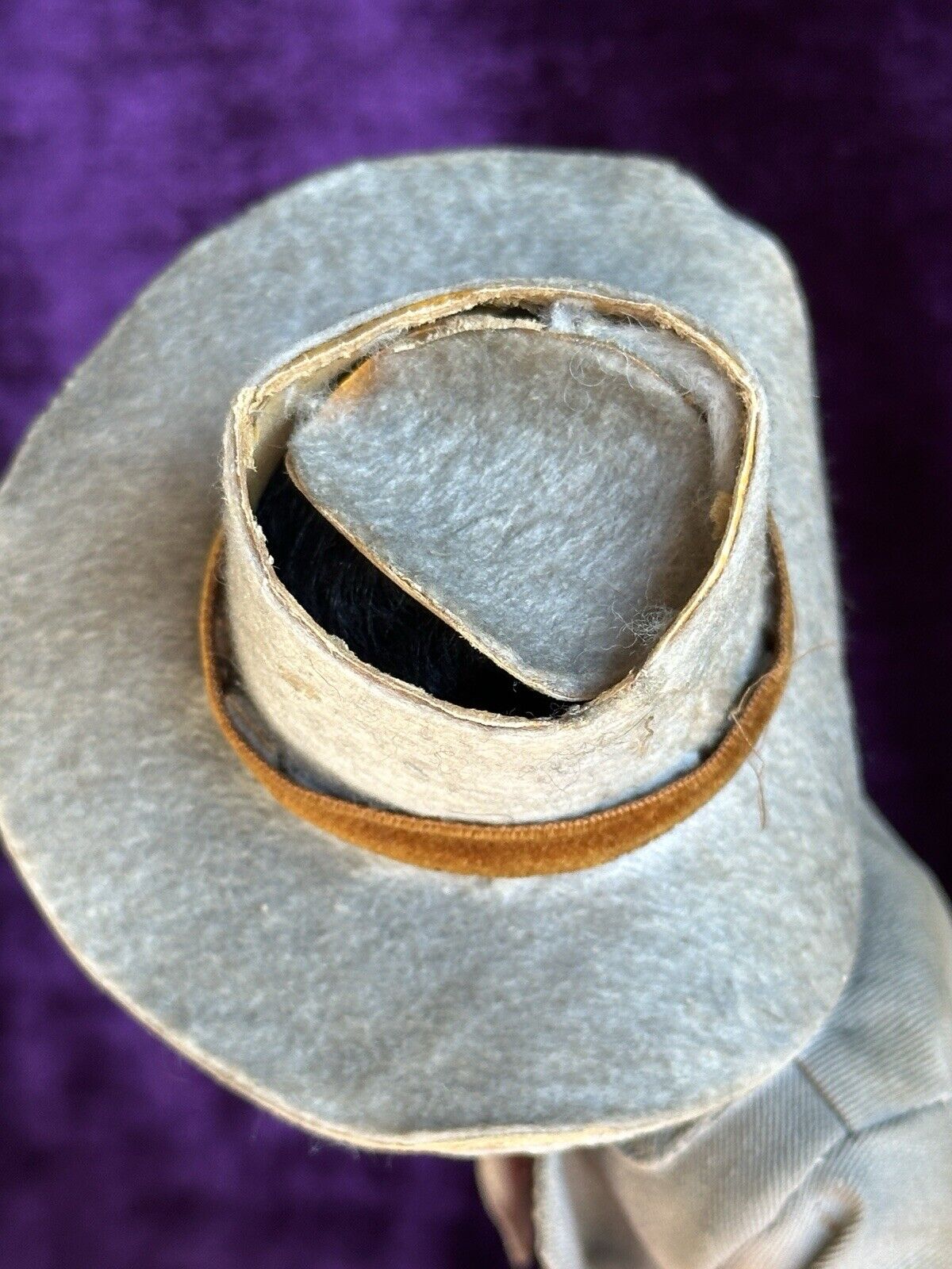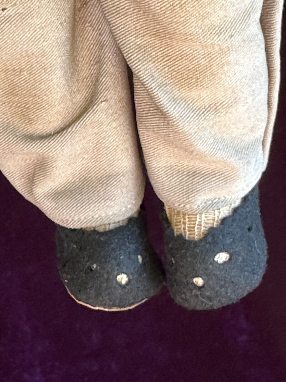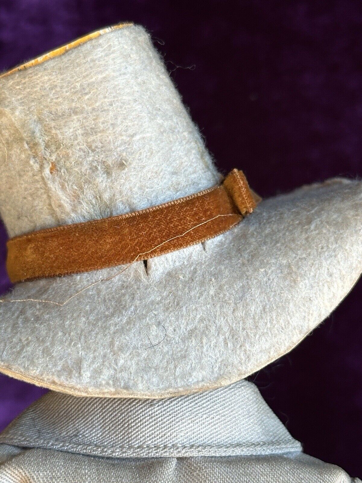 This wonderful doll is coming with an original tag. The doll is in good shape, however, there are some stains to the face. The hat shows some damage and wear. Light wear to the outfit. The doll is approximately 10.5" tall, not including the hat. Please refer to the pictures for more details. No stand to the doll.