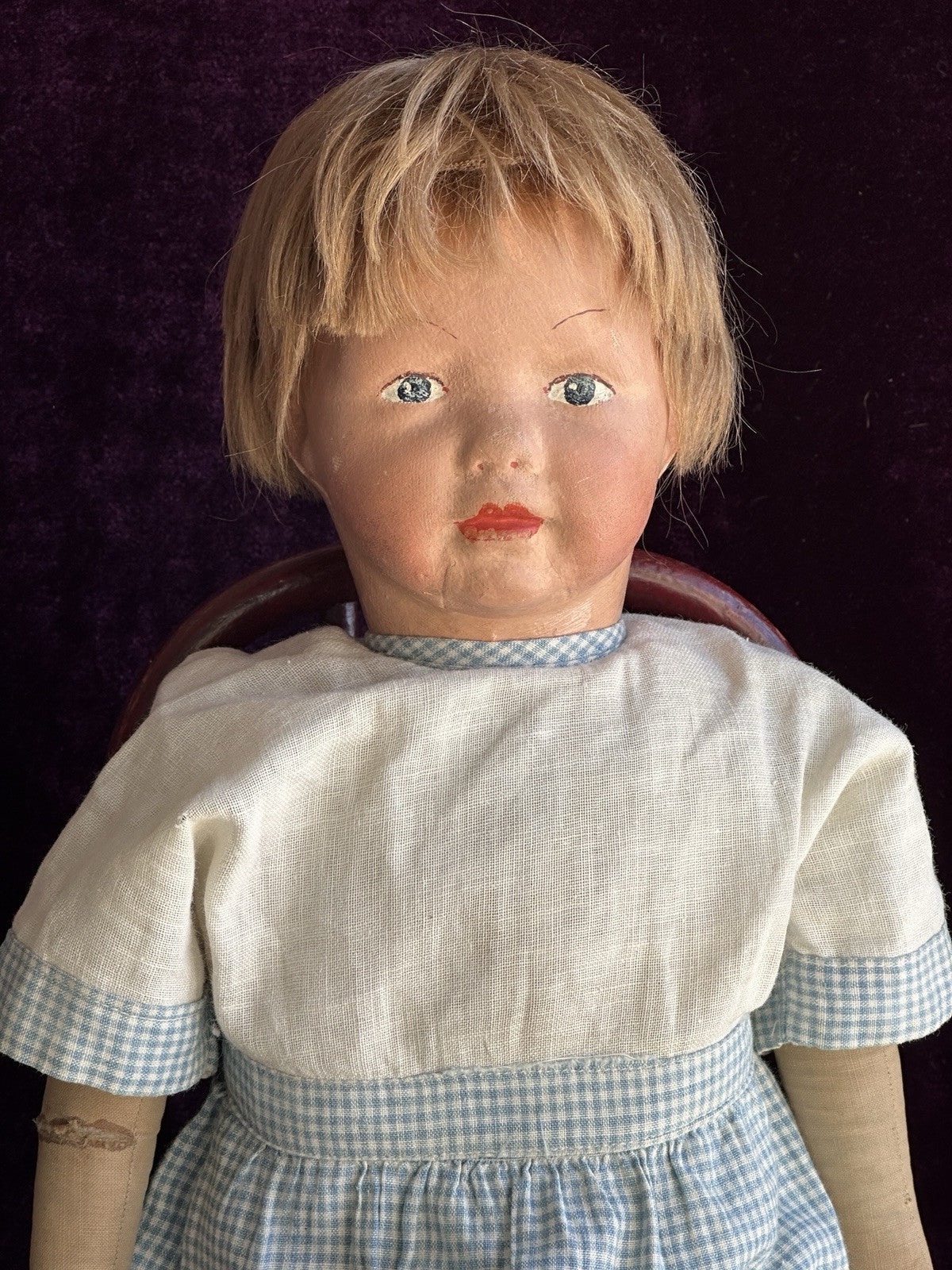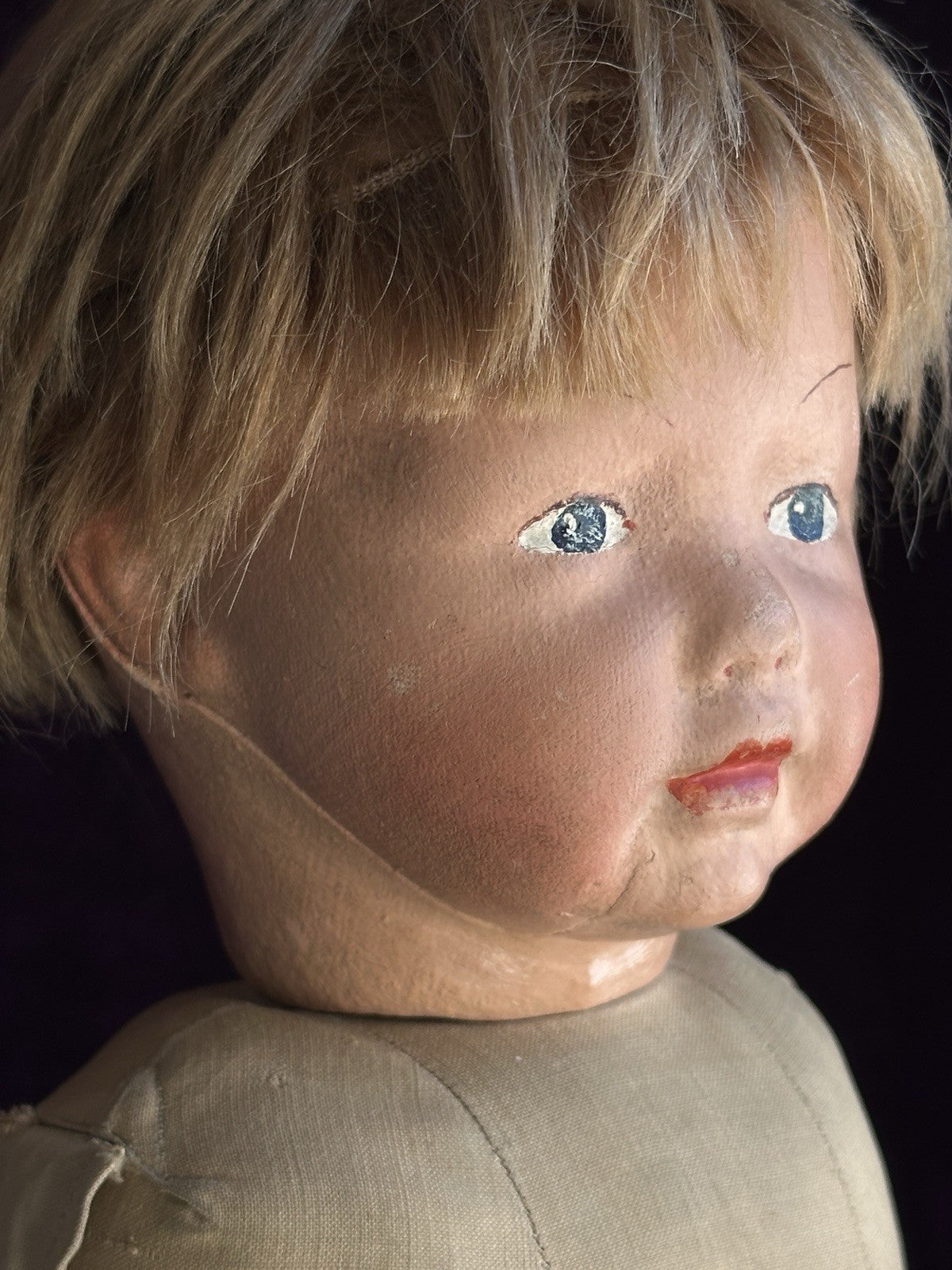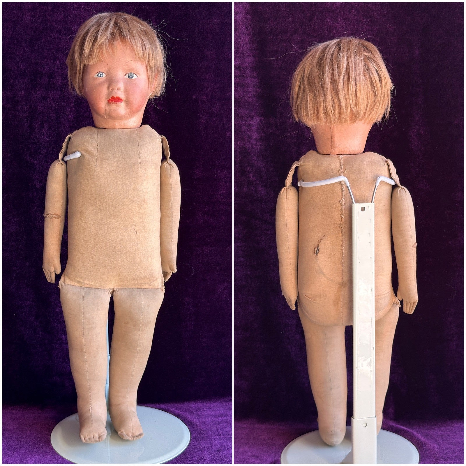 Antique American 19” Kamkins Cloth Oil Painted Doll