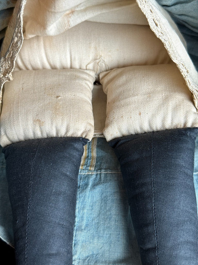 Antique American Moravian Style 16" Primitive Folk Art Cloth Rug Portrait Doll