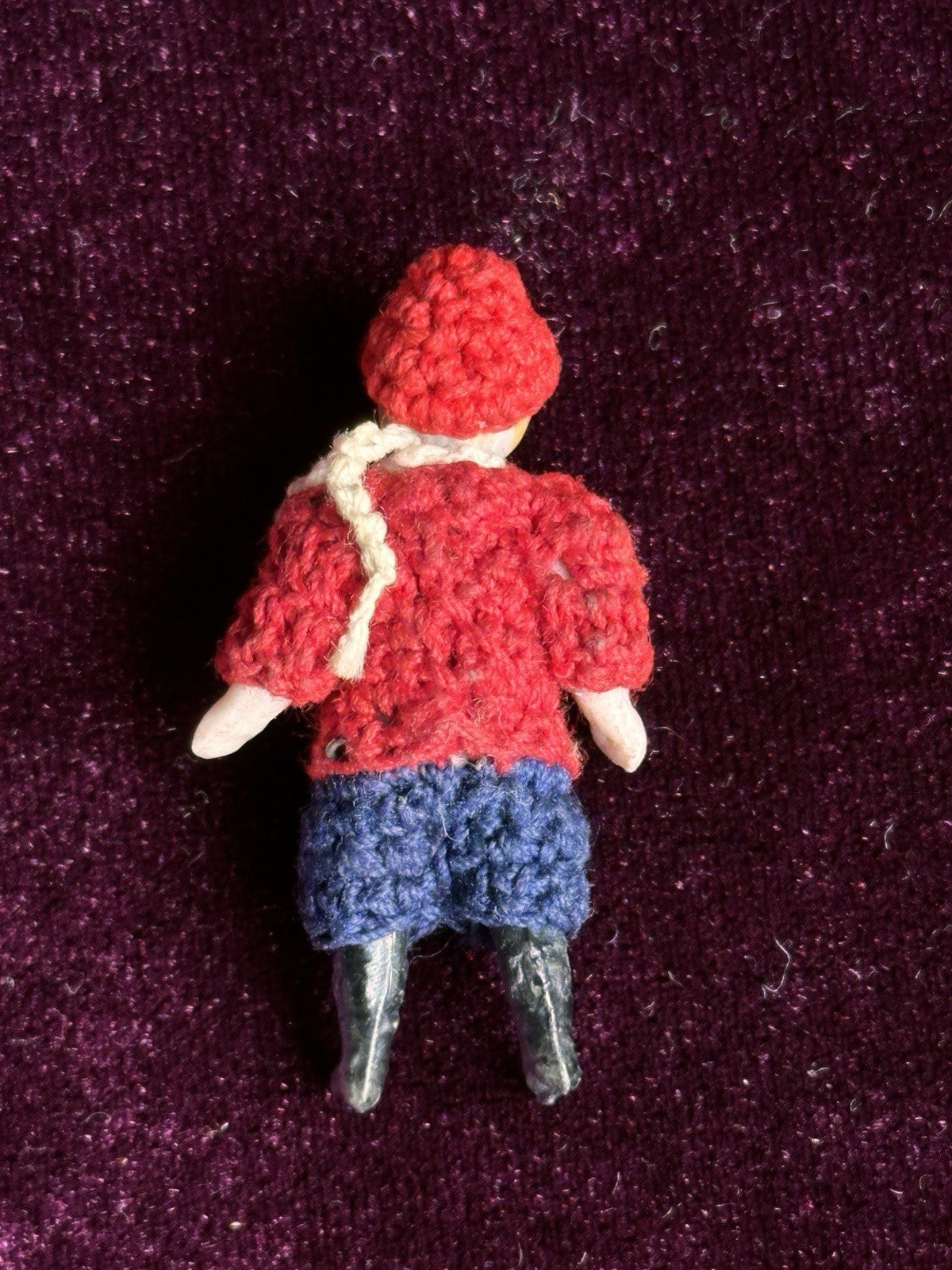 These adorable tiny dolls measure approximately 1.5" and 1.375" tall. Both are in great condition, all original, and come with their original removable hats. The hats are held in place with small pieces of wax, which can easily be removed.