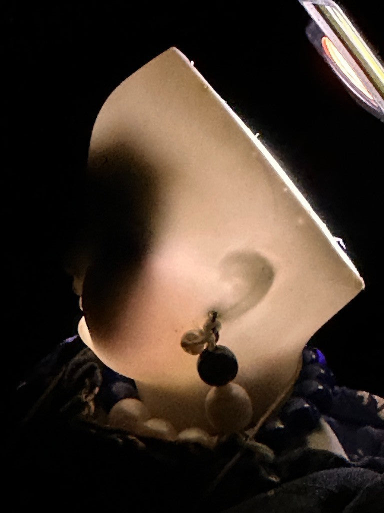 Beautiful hat shows some wear. The binoculars shown in the photos are included with the doll.