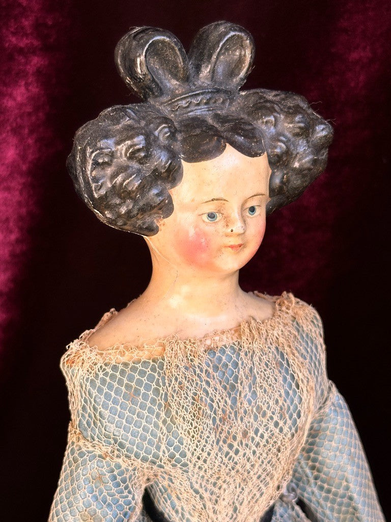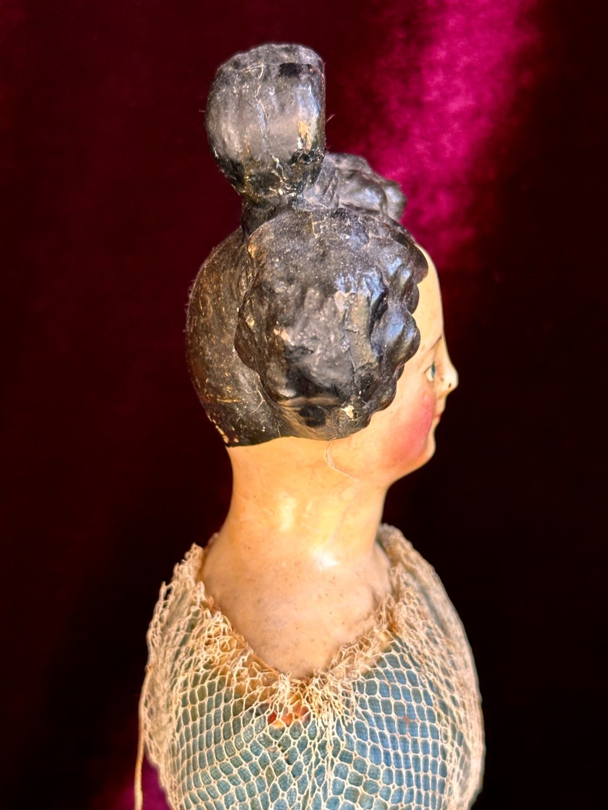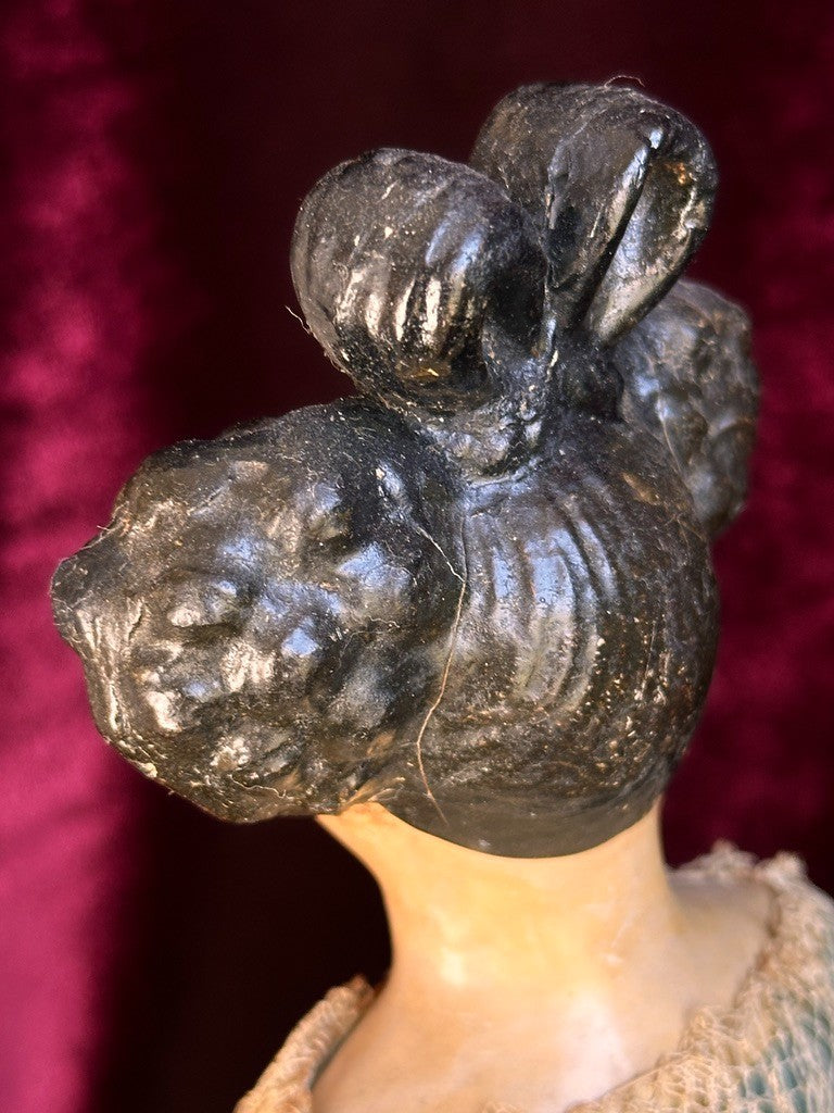 Antique German 12.75” Papier Mache Milliner’s Model Apollo Knot Coiffure Doll