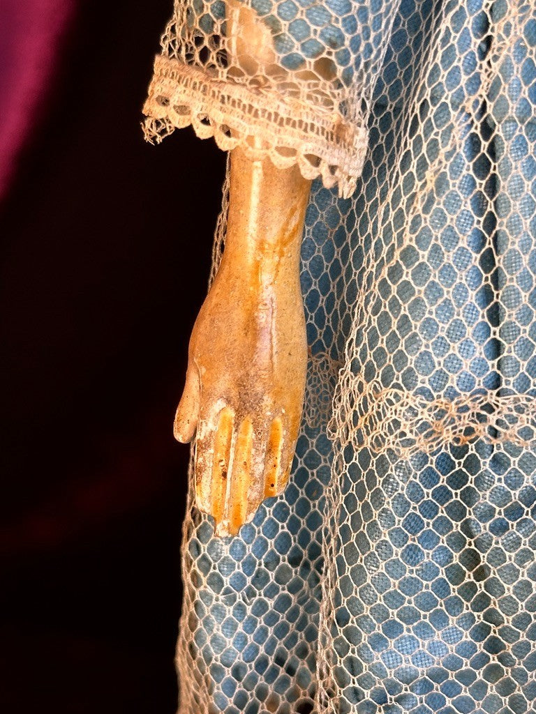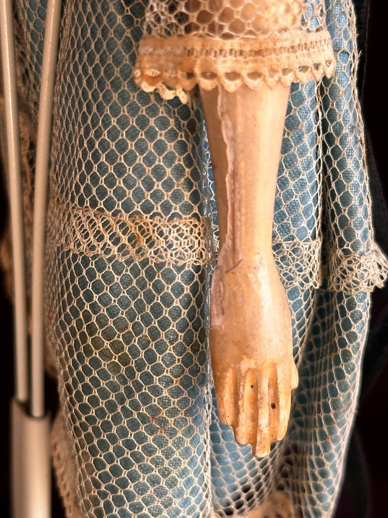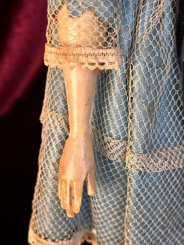 Absolutely beautiful and rare doll that is very nicely preserved. She does have some small flaws that are all shown in the photos, including a light crack on the right side of the head and other small signs of wear to the head, arms, and legs, but no serious flaws to the doll.