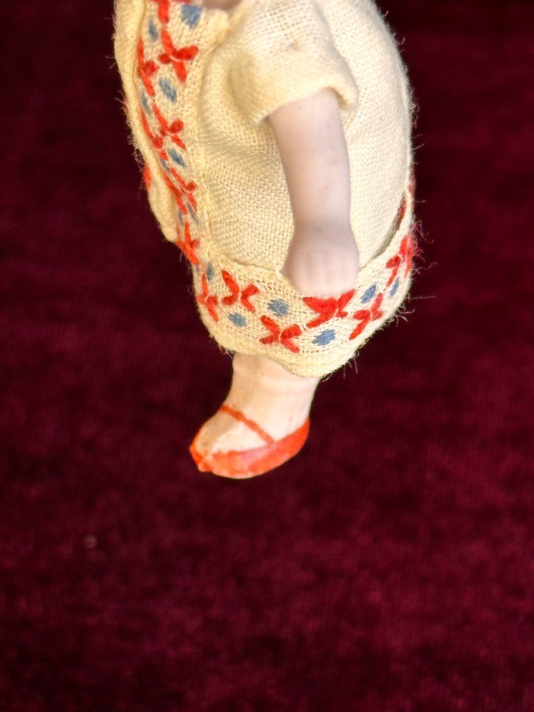 Antique German 2.75” Hertwig Dollhouse All Bisque Googly Eyes Miniature Doll