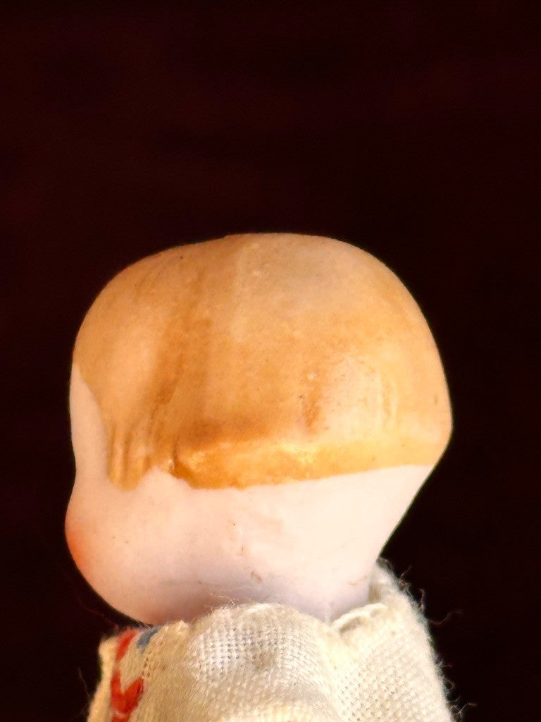 The doll is well preserved and looks good. There is a small production defect on the back of the head and possibly another tiny flaw on the left side. It is so small that it is hard to determine whether it is a mark, a hairline, or a kiln crack from production. No other flaws were found on the doll.