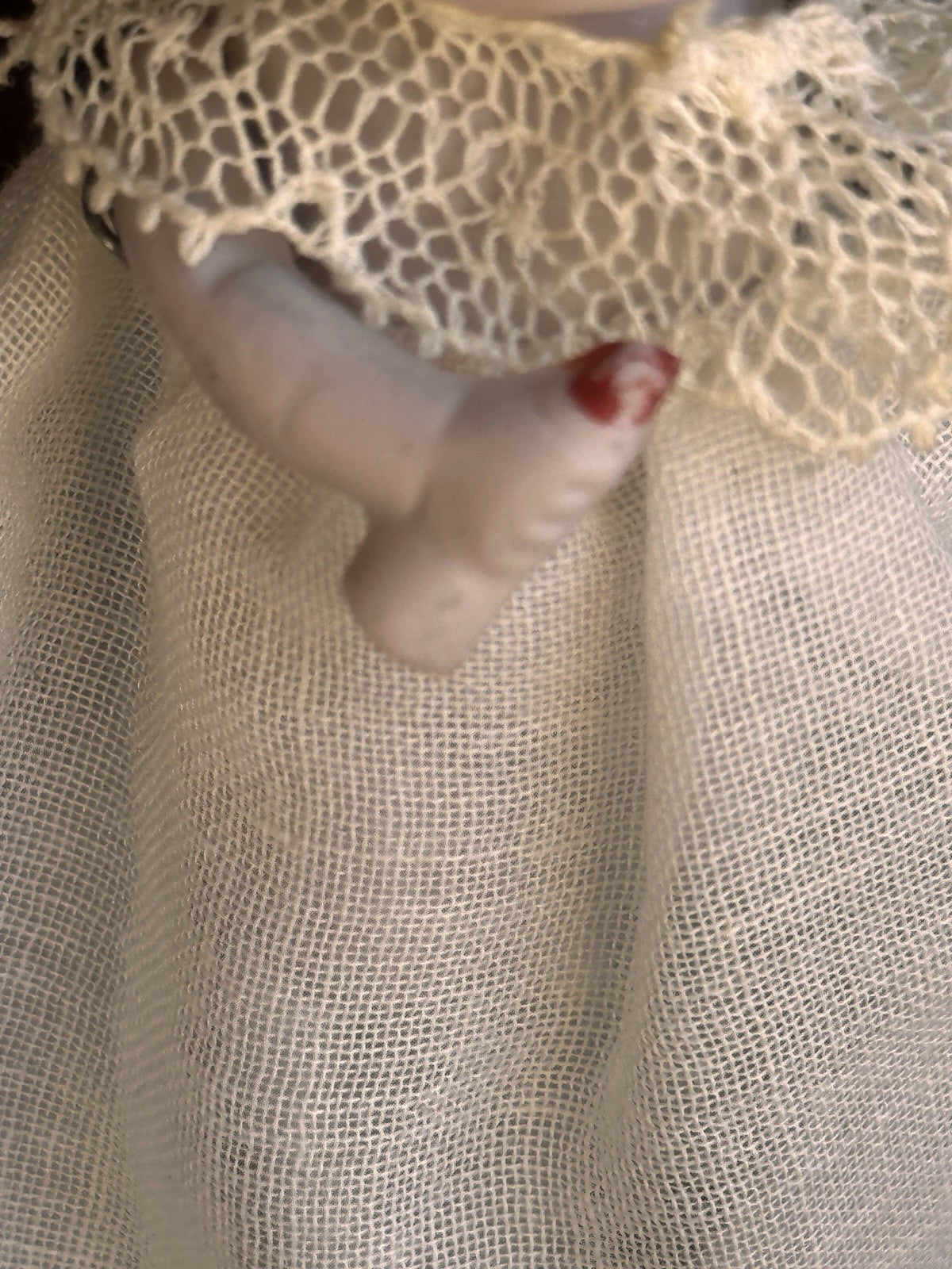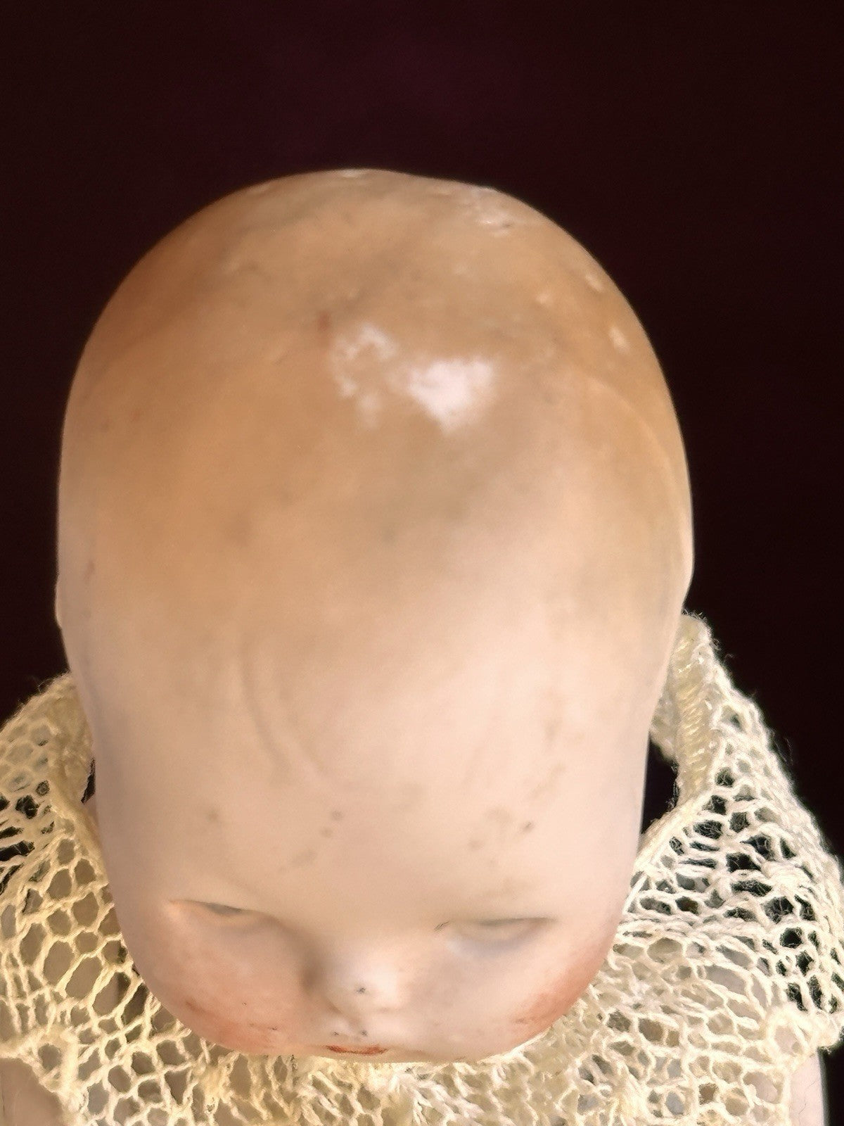Adorable baby doll! There are some paint flows and production mold defects to the doll. No damage. The arms are jointed. The rest of the parts are one piece.