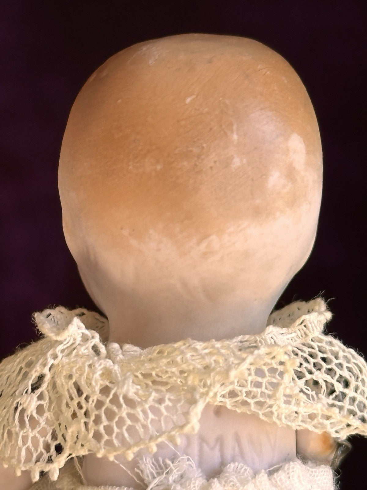 Antique German 3.375” All Bisque Hertwig Miniature Baby Doll Molded Bottle