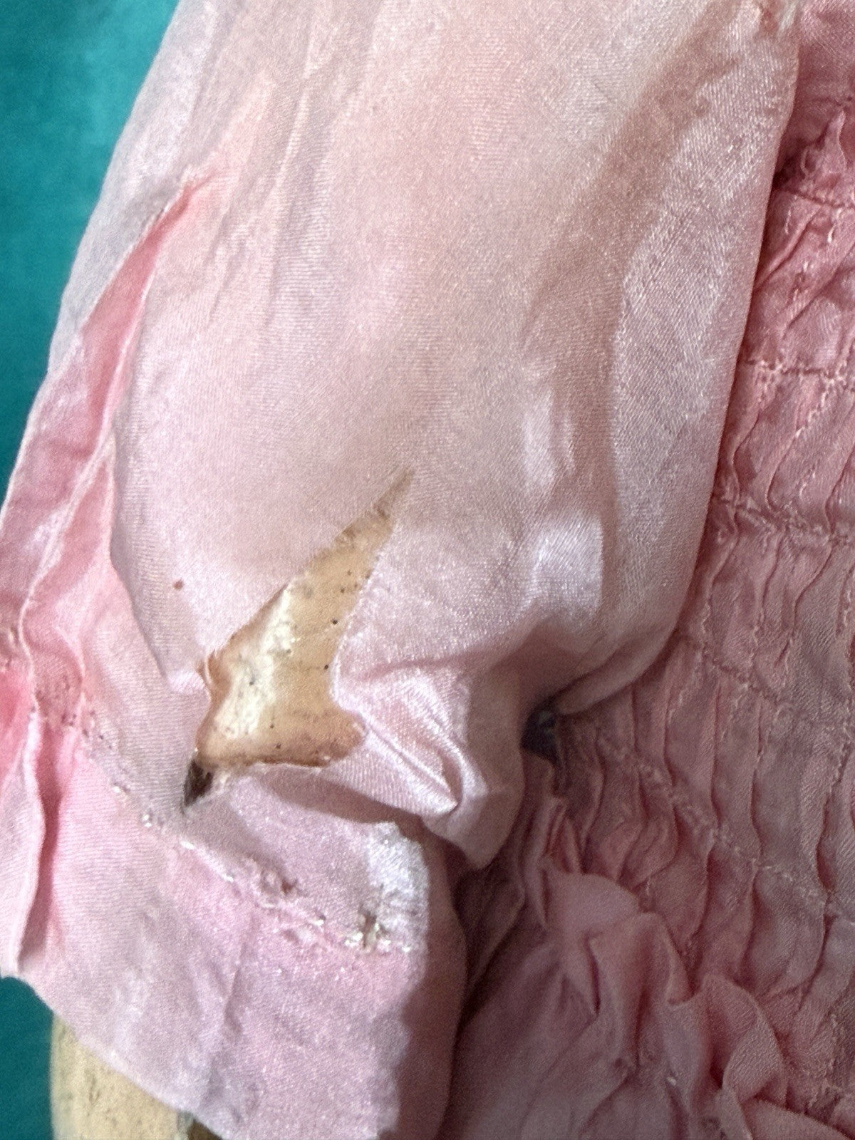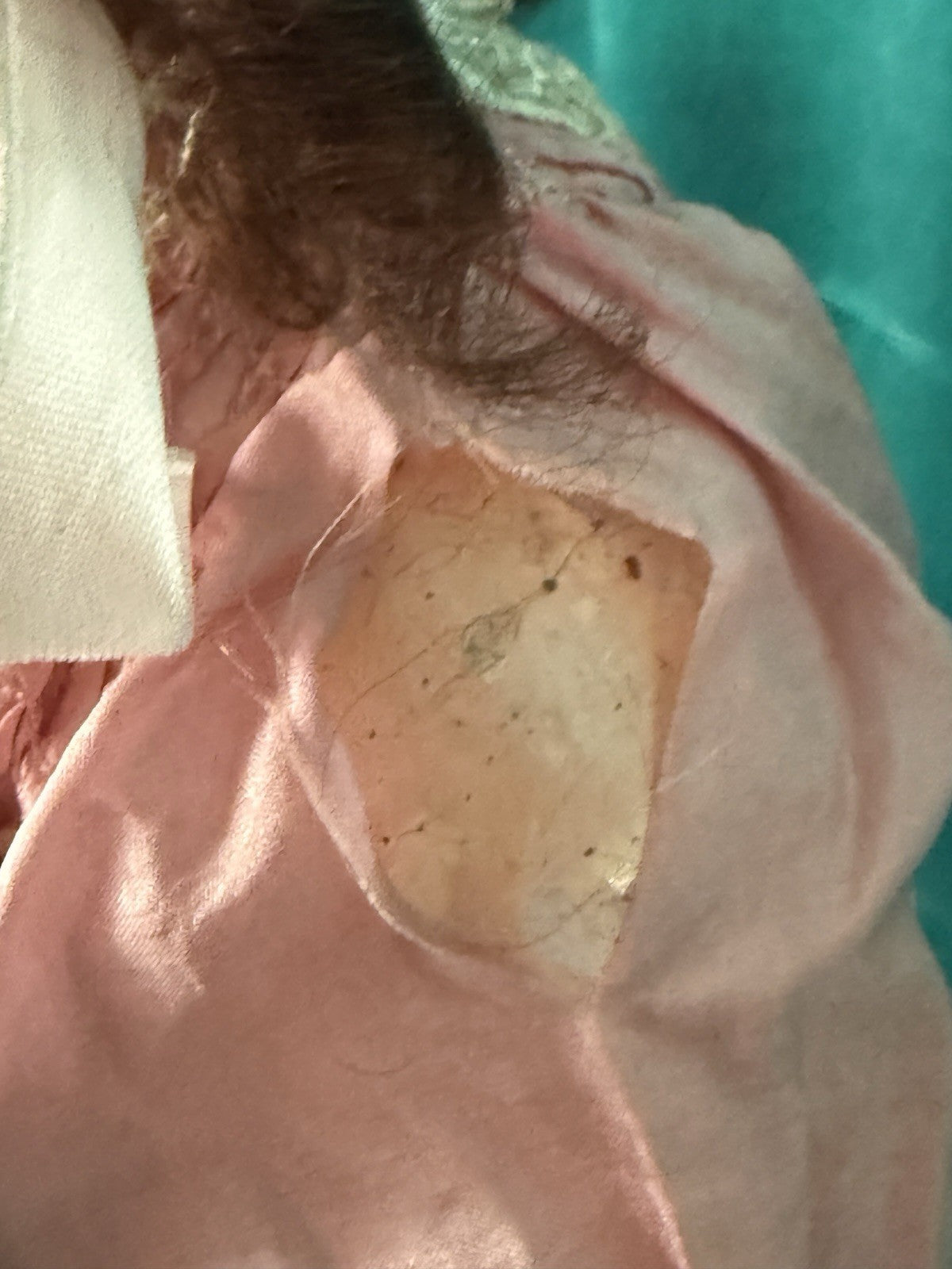 Antique doll by Cuno Otto Dressel; mold 1912. Bisque head and composition jointed body. Head seems to be damage free. Working brown sleepy eyes; painted lashes and partially gone upper real lashes. Her wig looks like new one but is not in great condition. Pierced ears with new earrings. The body shows some wear. Stringing is good. She is nicely dressed as shown. Vintage/antique/new outfit . Undergarments are too big for her. Some holes and stains are present to all parts of her outfit. Please refer to the pictures for more details. Stand is not included.