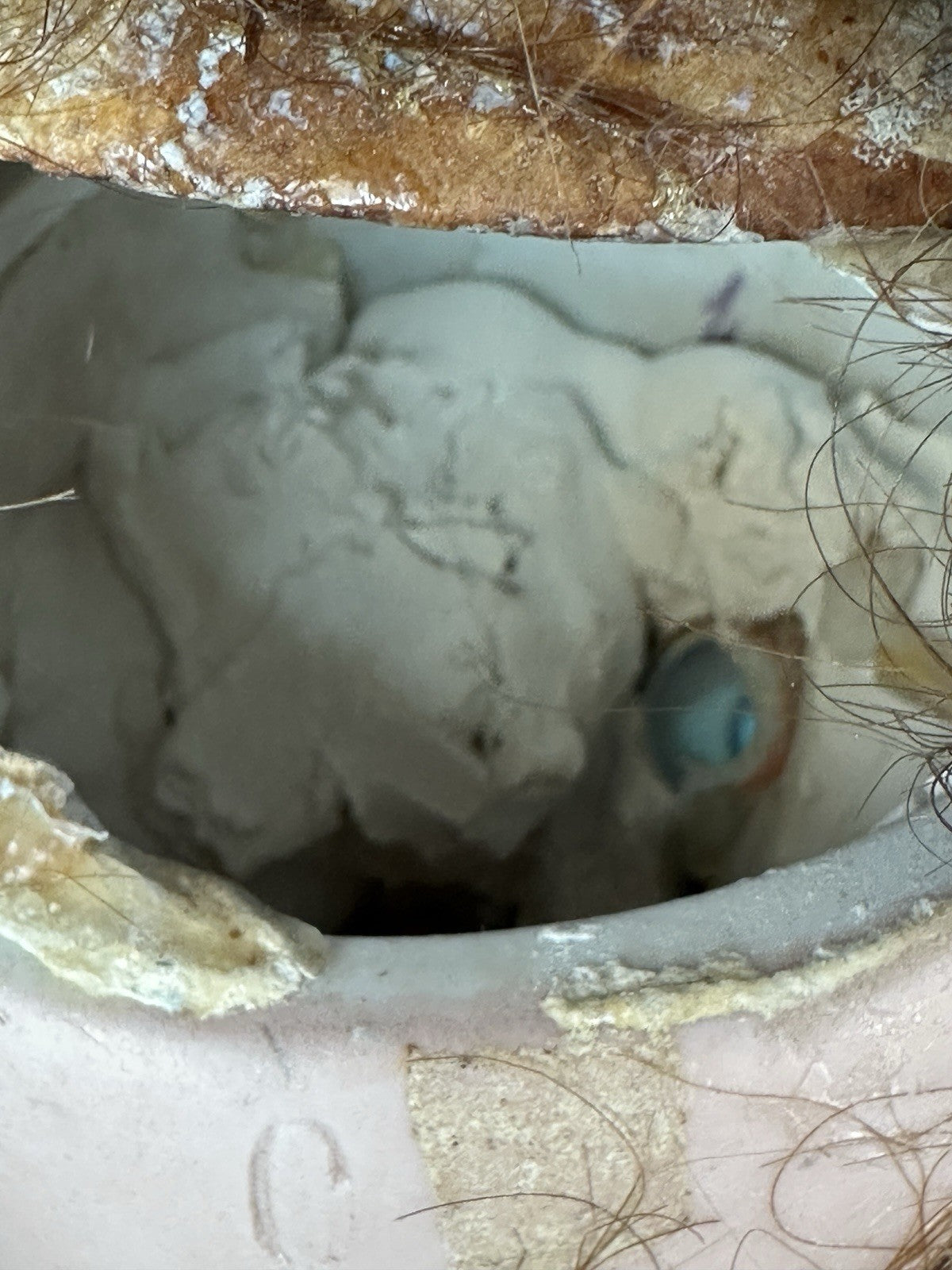 Stunning antique doll ; most likely created by Kestner- marked with C; one of his alphabet series dolls. She is about 25"; has bisque shoulder plate and turned head and bisque partial arms. Broken finger to left hand. Stationery/fixed side glancing eyes. Her wig seems to be original.