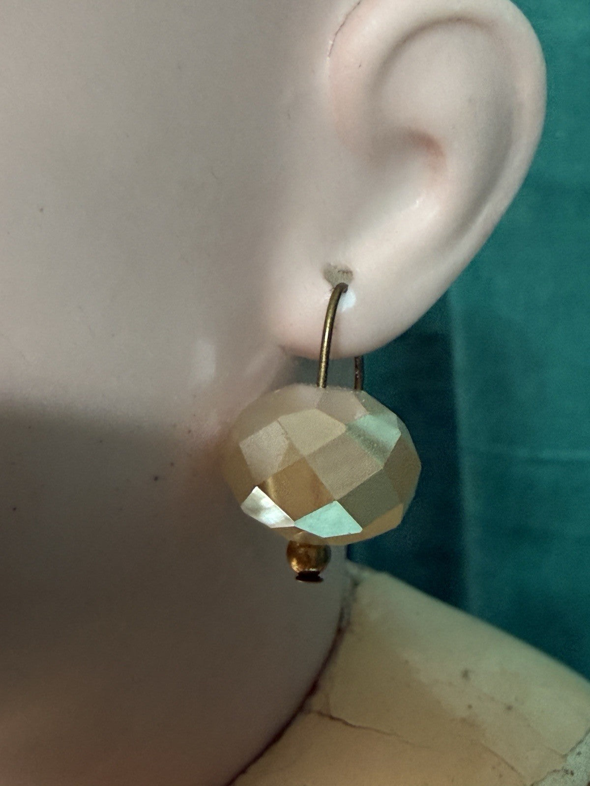 Cute doll by Simon and Halbig!!! Bisque head and composition jointed body. Small hairline to the top of the head - see photo. There are some wig pulls on the head as well. Working brown sleepy eyes; painted upper and lower lashes. Her wig looks like antique one. Pierced ears with new earrings. Small flake to earrings insertion site. The body shows some wear. Stringing is very good. She is beautifully dressed as shown. Vintage/new outfit . Holes and stains are present. Please refer to the pictures for more details. Stand is not included. Comes with a cute basket.