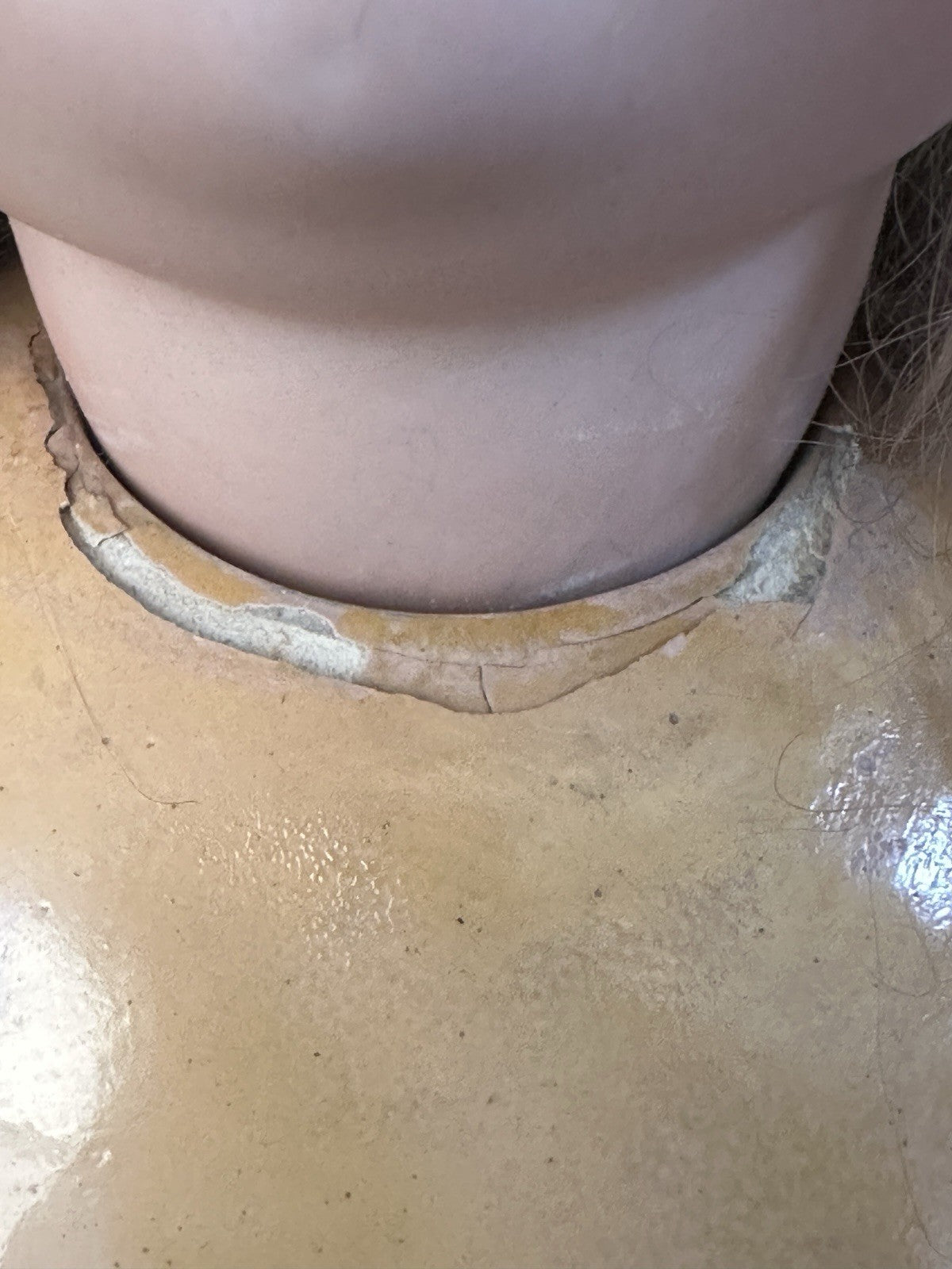 Her body is all composition; stamped. Stringing is ok. Some crazing/cracking, shabby areas are present- please see all photos as they are part of the description.