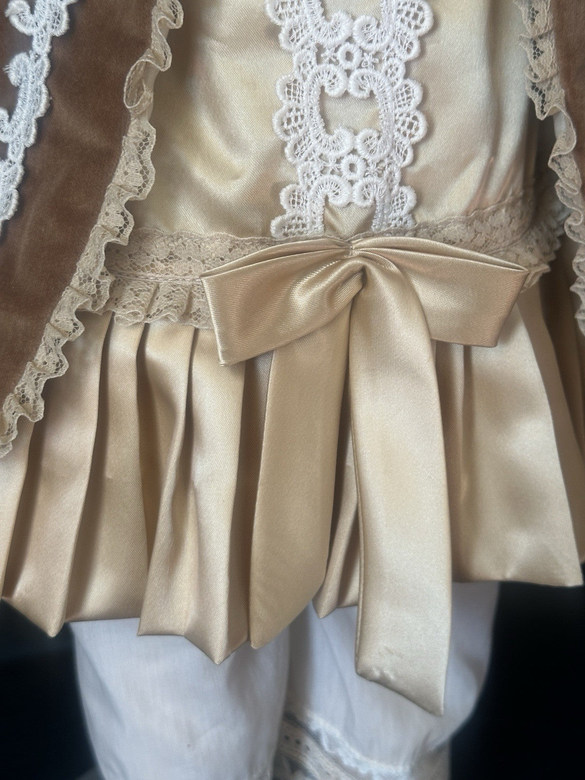 Beautiful well tailored new outfit. Some stains and holes might be present. Stand is not included.