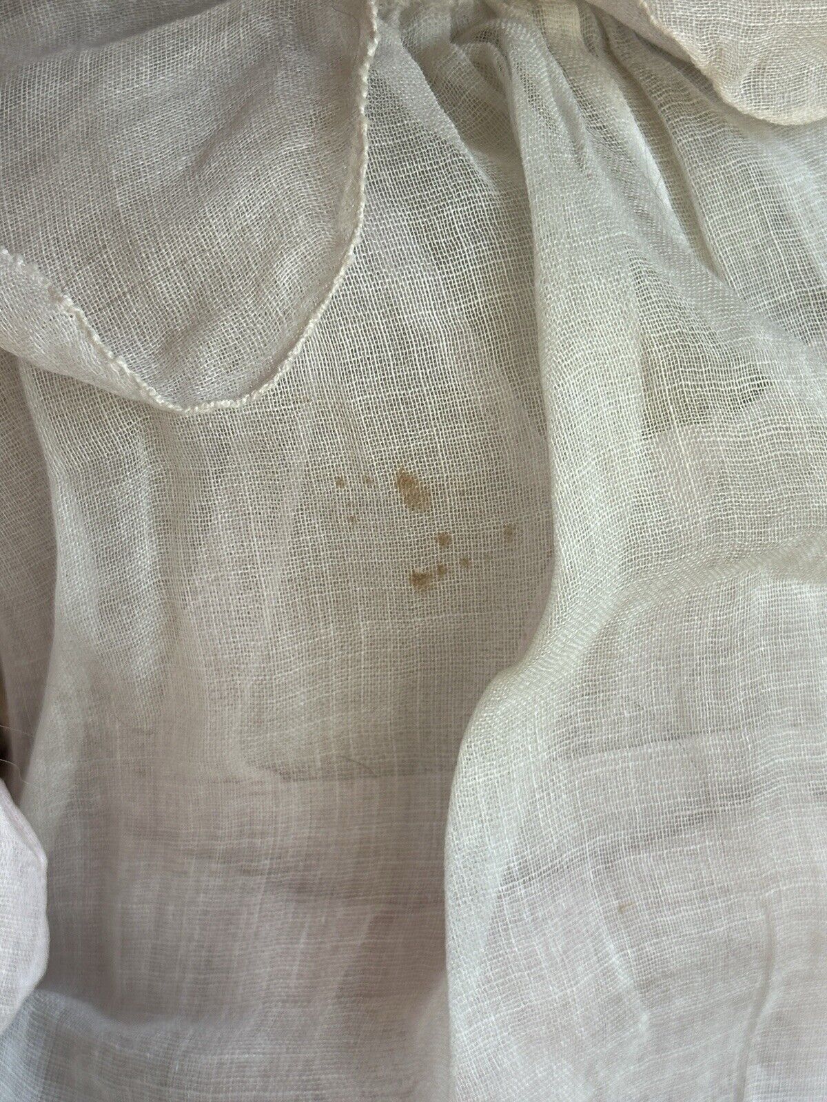 This very pretty doll is all original and is in a good condition. She has swivel neck. Her legs have some stains. Other light wear to the doll, but no damage. Her original dress is tagged. Small stains to the dress. The shoes are not original, as well as her beautiful hat. Please refer to the pictures for more details. No stand or a chair are included.