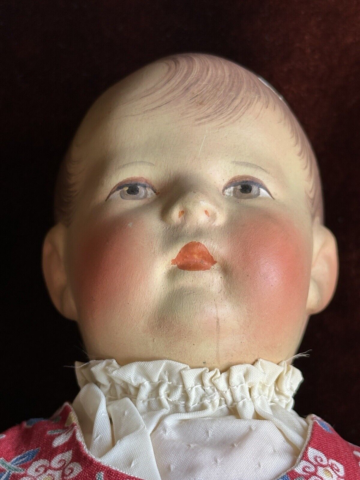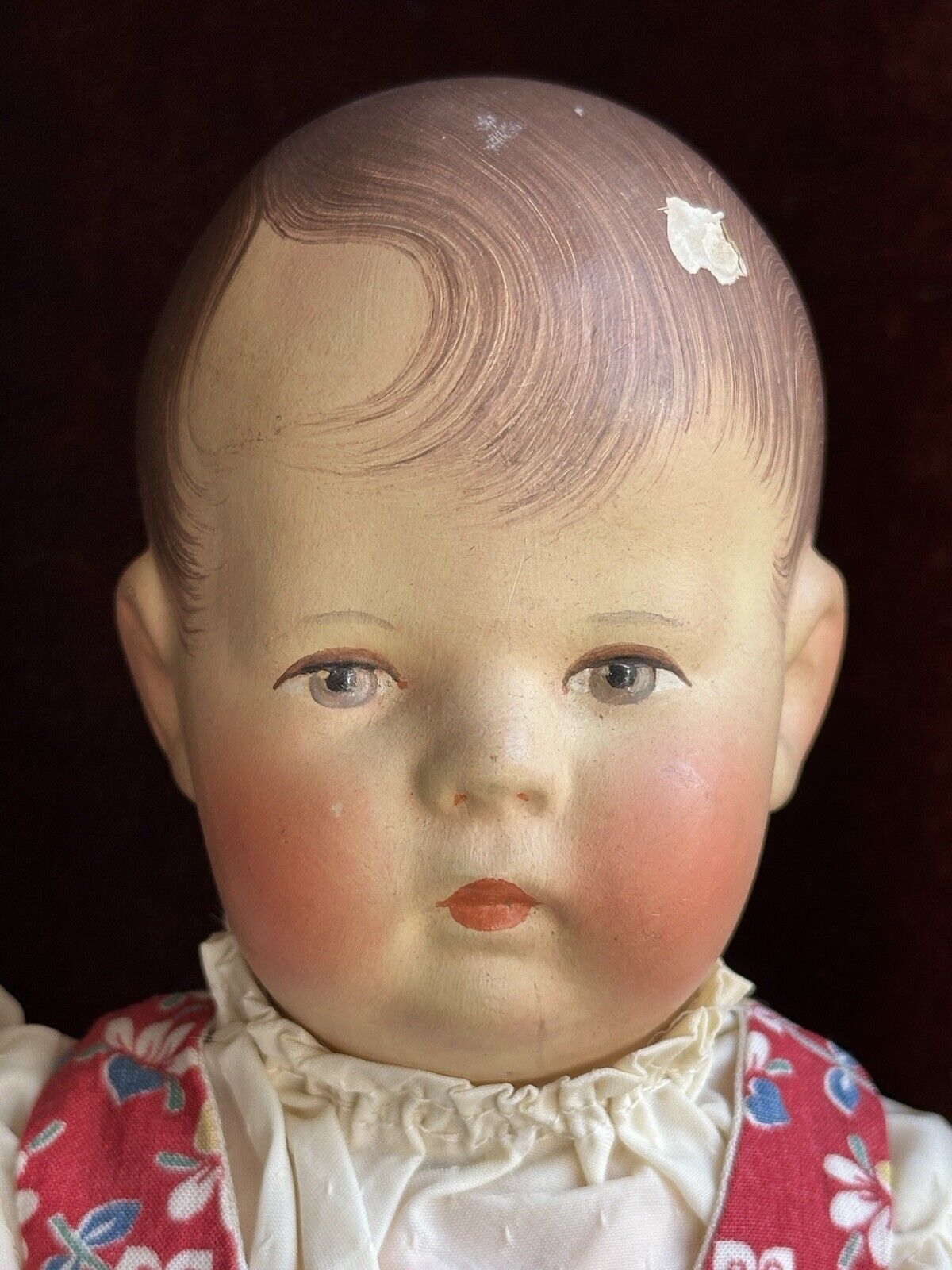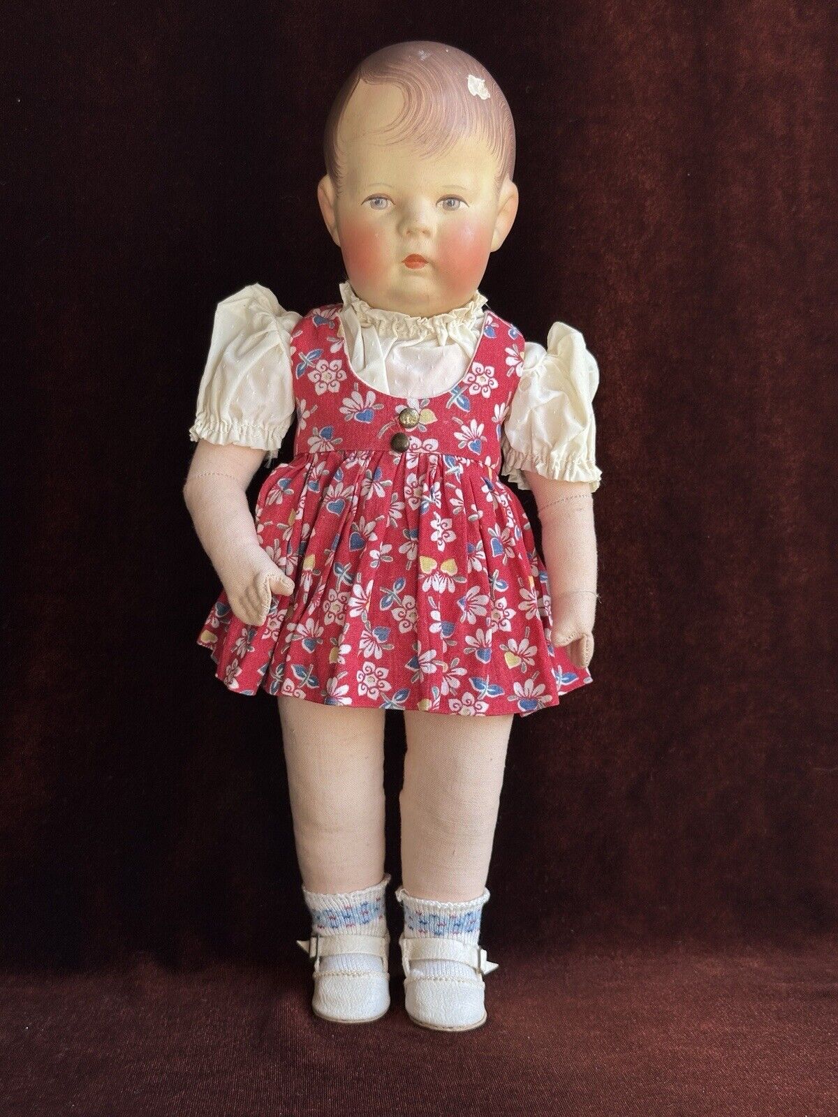 Fabolous all original doll in good condition. The doll has a chip to the head, but all other flaws are very minor. These include light small marks/paint rubs/scratches. The doll is marked as shown on the photos. She is clean and is ready to be displayed. The doll is coming exactly as shown on the photos. Please refer to the pictures for more details. No stand to the doll.