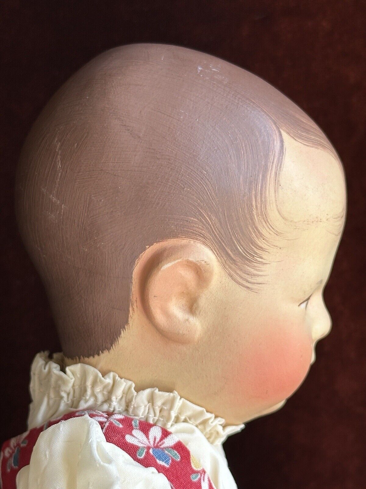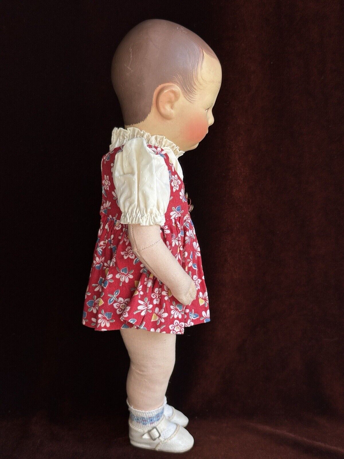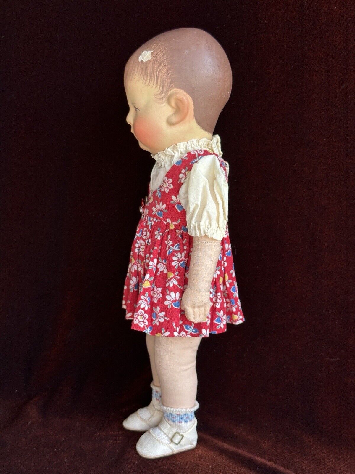 Fabolous all original doll in good condition. The doll has a chip to the head, but all other flaws are very minor. These include light small marks/paint rubs/scratches. The doll is marked as shown on the photos. She is clean and is ready to be displayed. The doll is coming exactly as shown on the photos. Please refer to the pictures for more details. No stand to the doll.