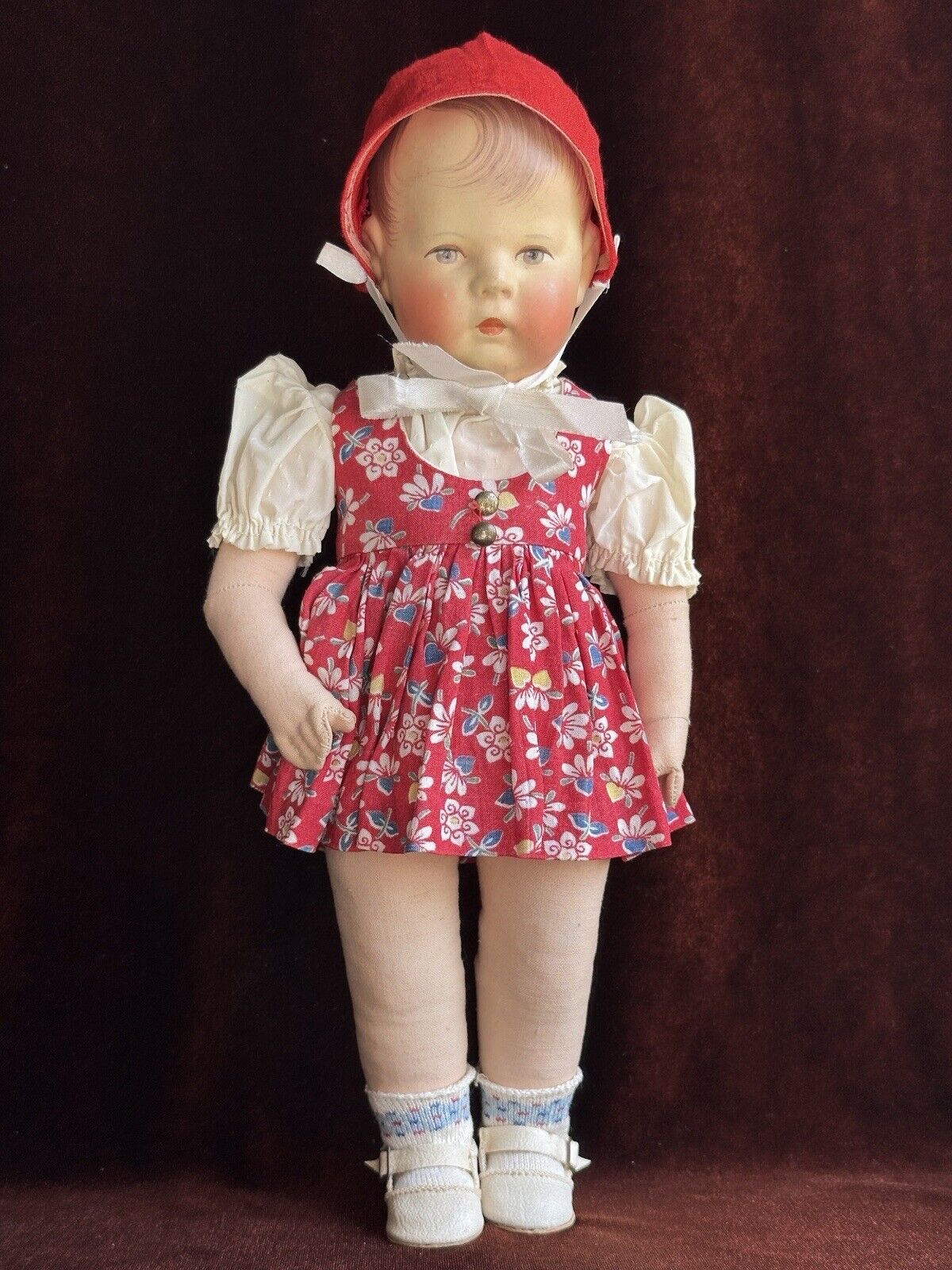 Antique/Vintage German Kathe Kruse 13.75” Cloth Character Girl Doll