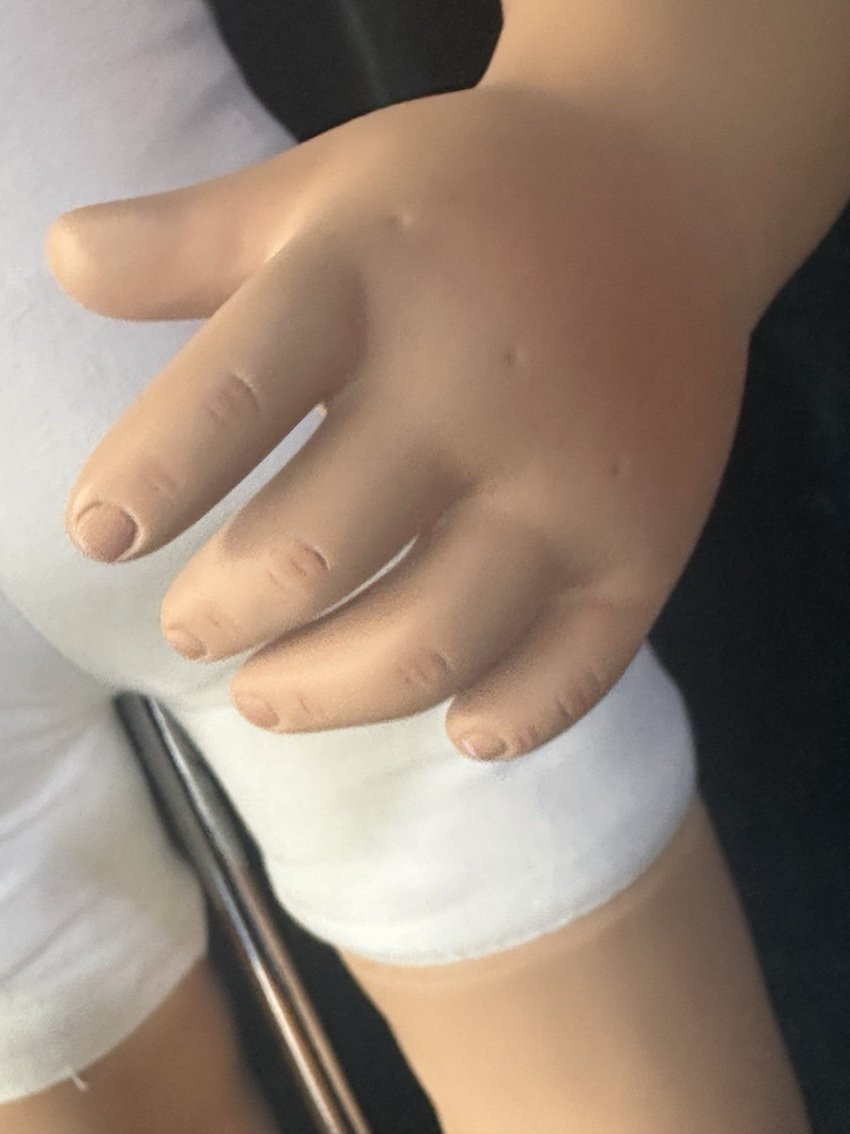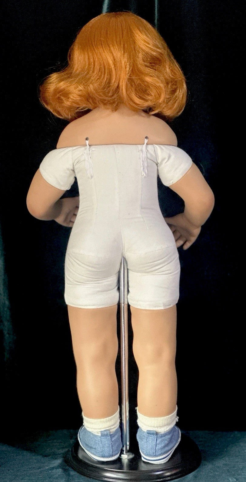 Comes with tag and COA and photo. No box. Some marks/scratches are present to the stand. We have noticed any significant stains to her cloth both but there might be some small stains/marks that we have missed .