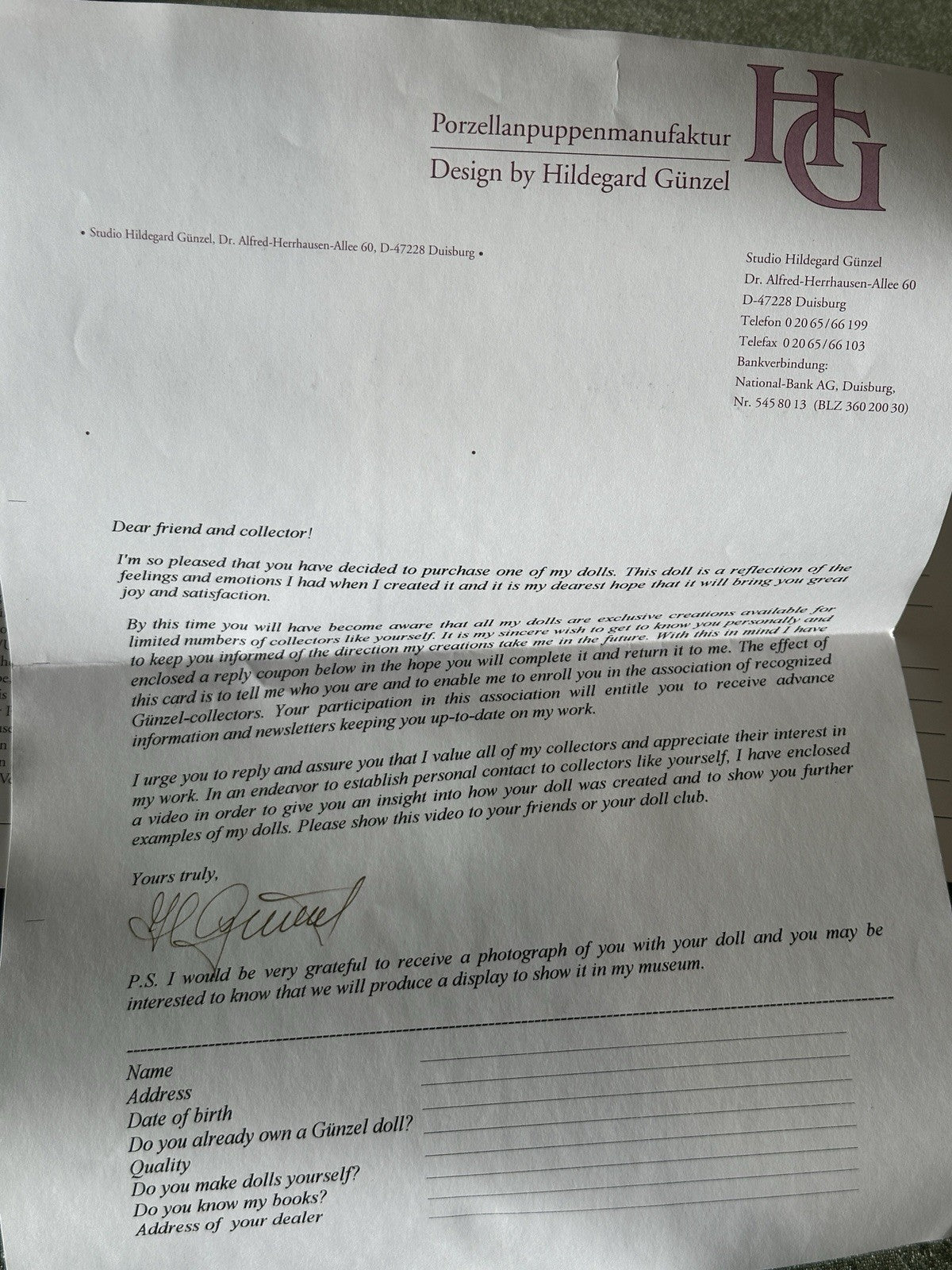 This is a truly amazing piece of art for Gunzel dolls collectors!!!