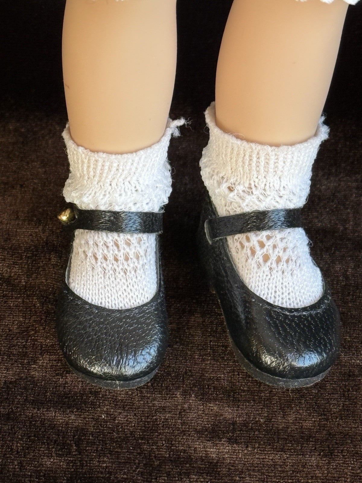 This cute doll is very clean and ready to be displayed. She is all original and is in a very good condition. The doll is coming with her tag. There is no box. The doll made of cloth and vinyl. Please refer to the pictures for more details. The stand is included.