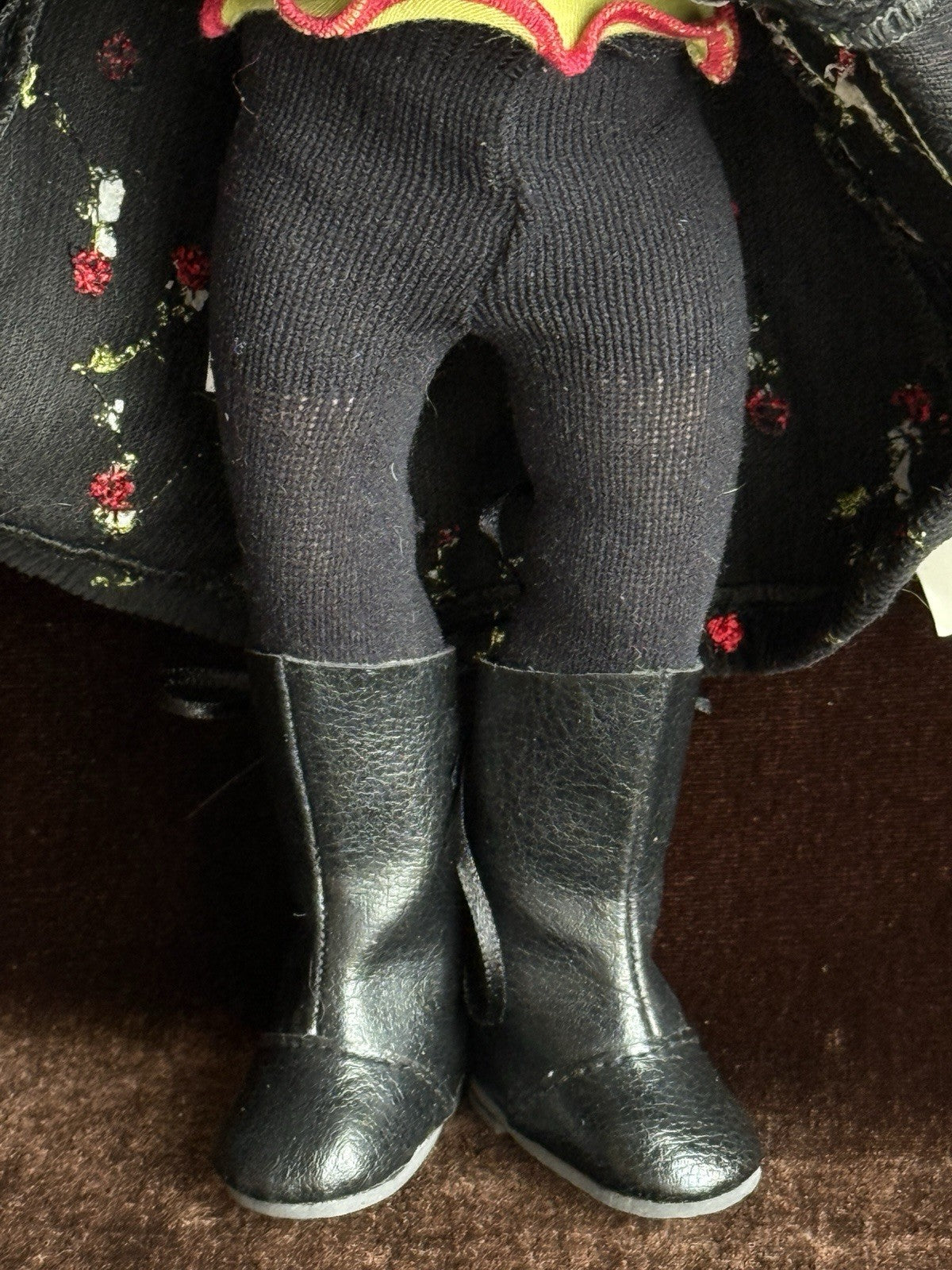Very pretty doll! She is all original, but missing her hat. The doll is in great condition. She is coming with a tag, but has no certificate or no. Please refer to the pictures for more details. No stand is included.