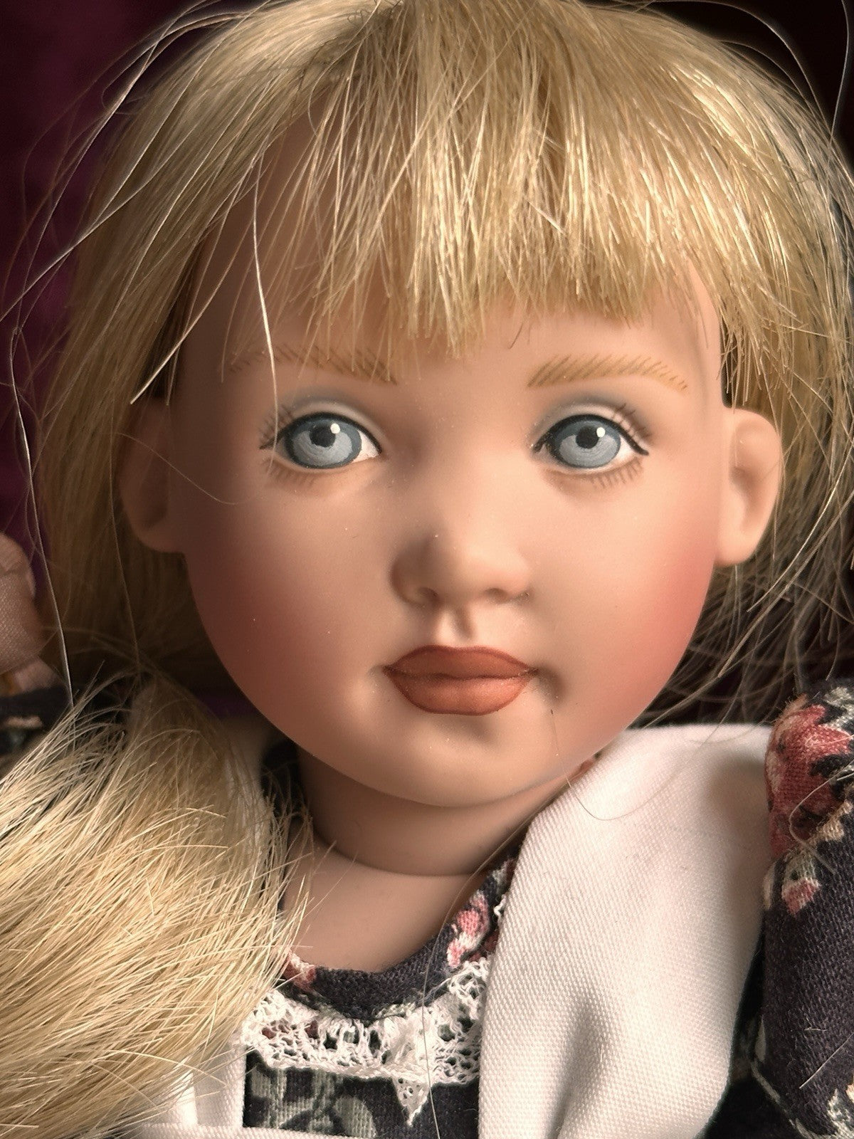 This very sweet doll has no box, tag or certificate. She is in a great condition and clean. She is missing her cap. Please refer to the pictures for more details. No stand to the doll. Dressed as shown.