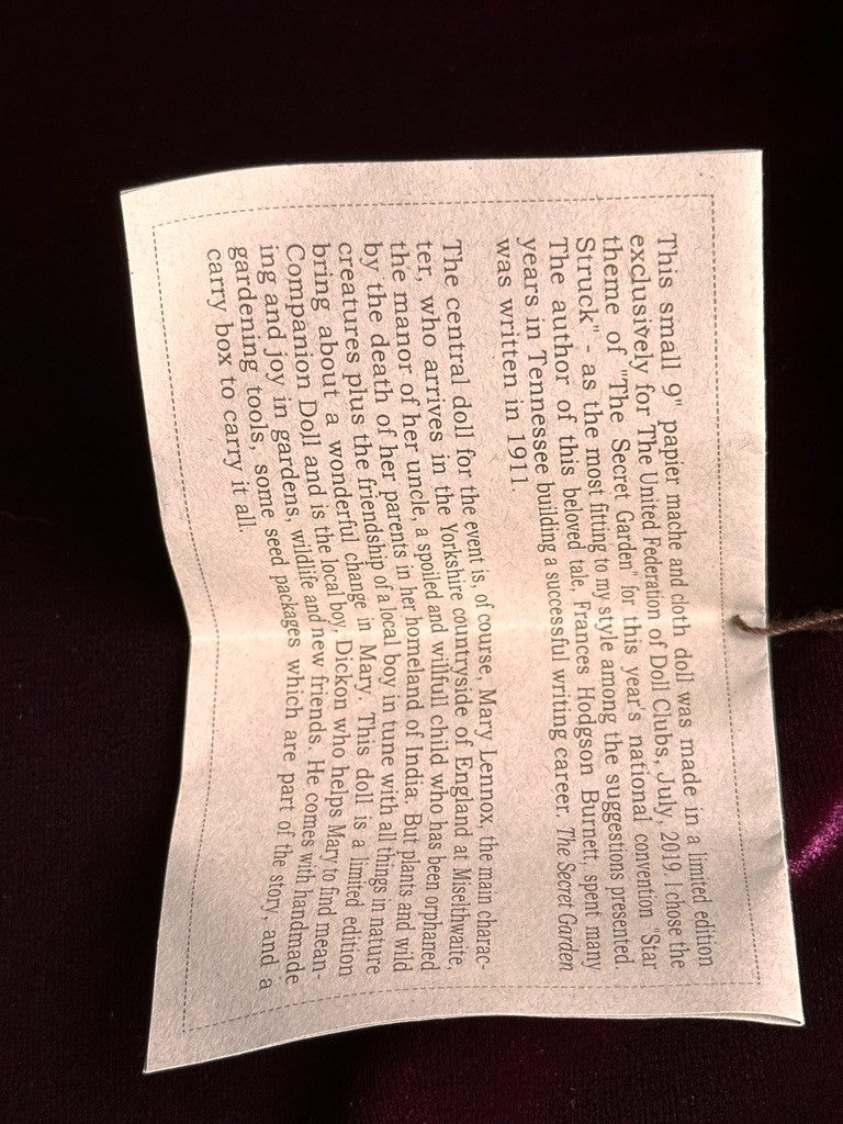 Collectible 9.5” UFDC Gail Wilson Dickon The Secret Garden Papier Mache Doll Tag