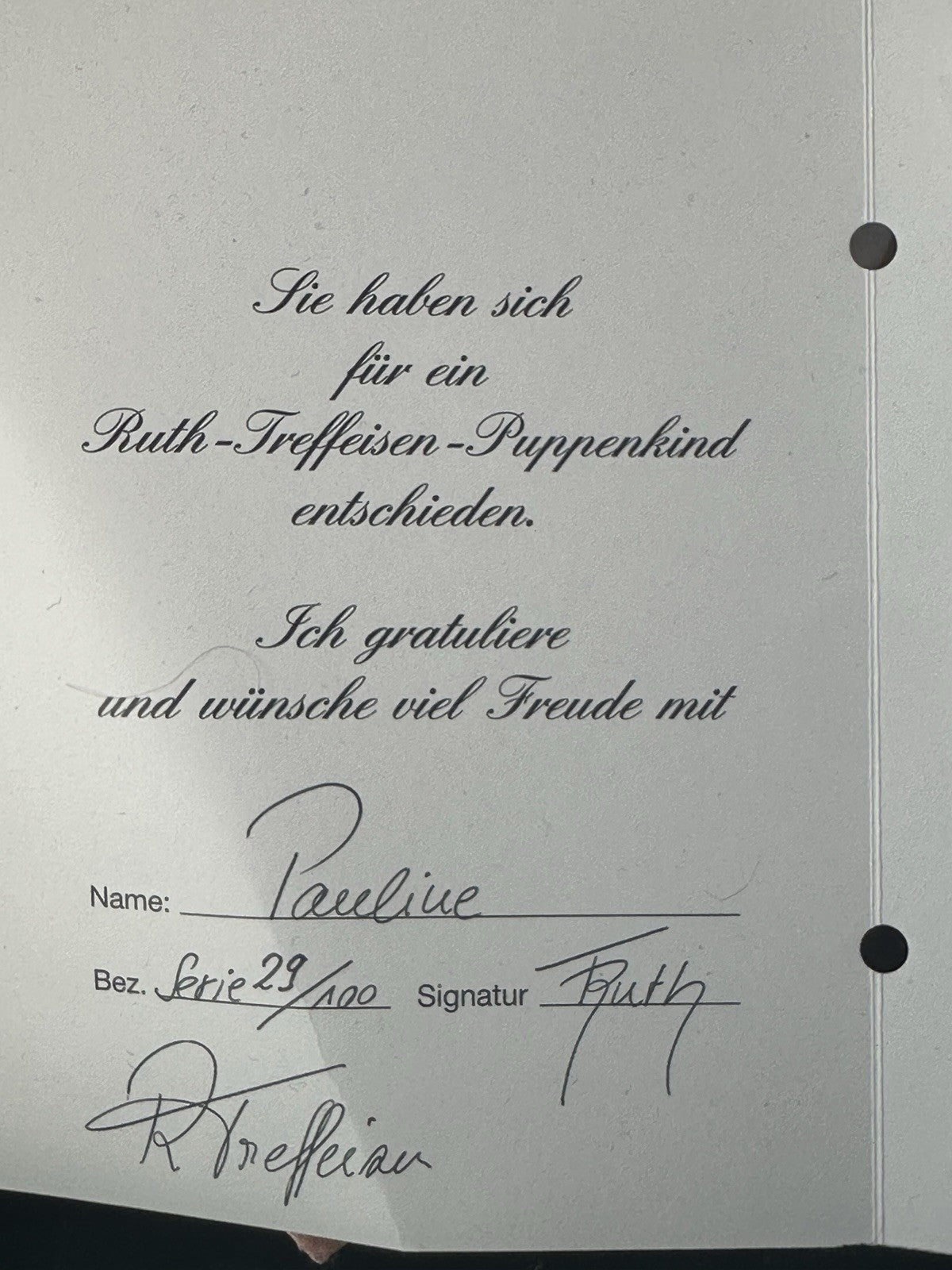 Collectible Artist 22” Porcelain Doll “Pauline” by Ruth Treffeisen LE 100 COA