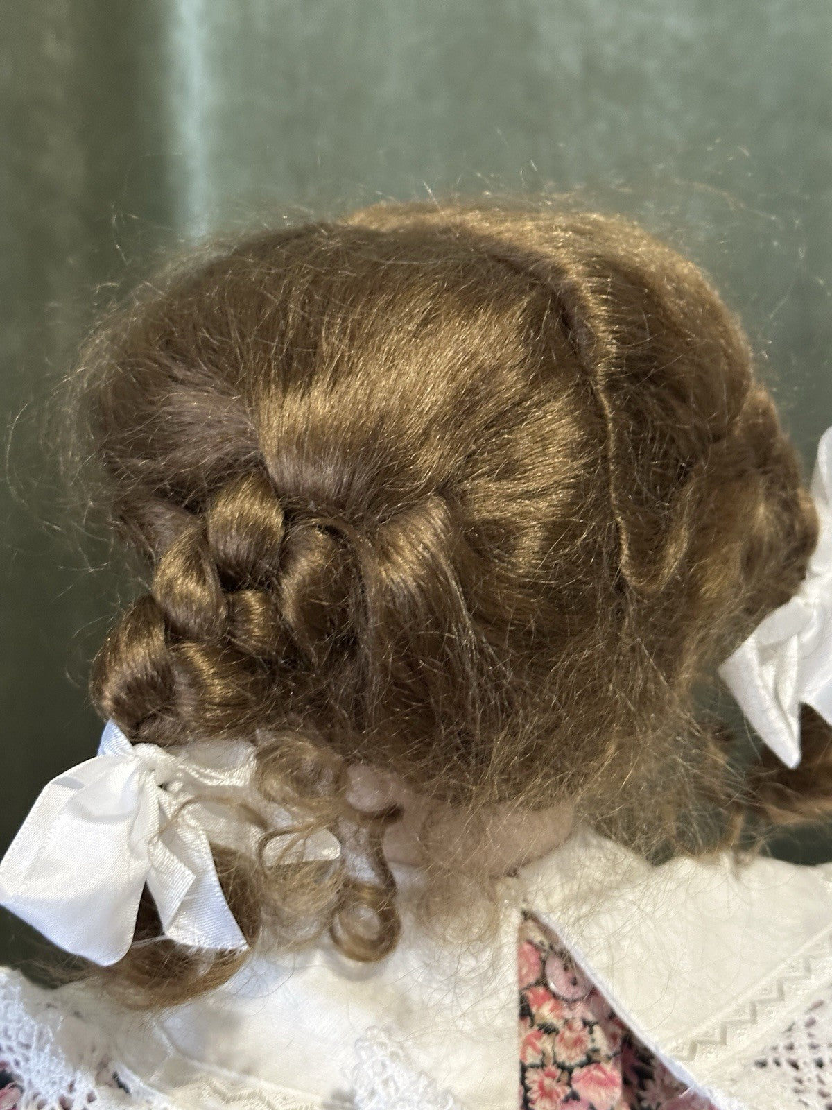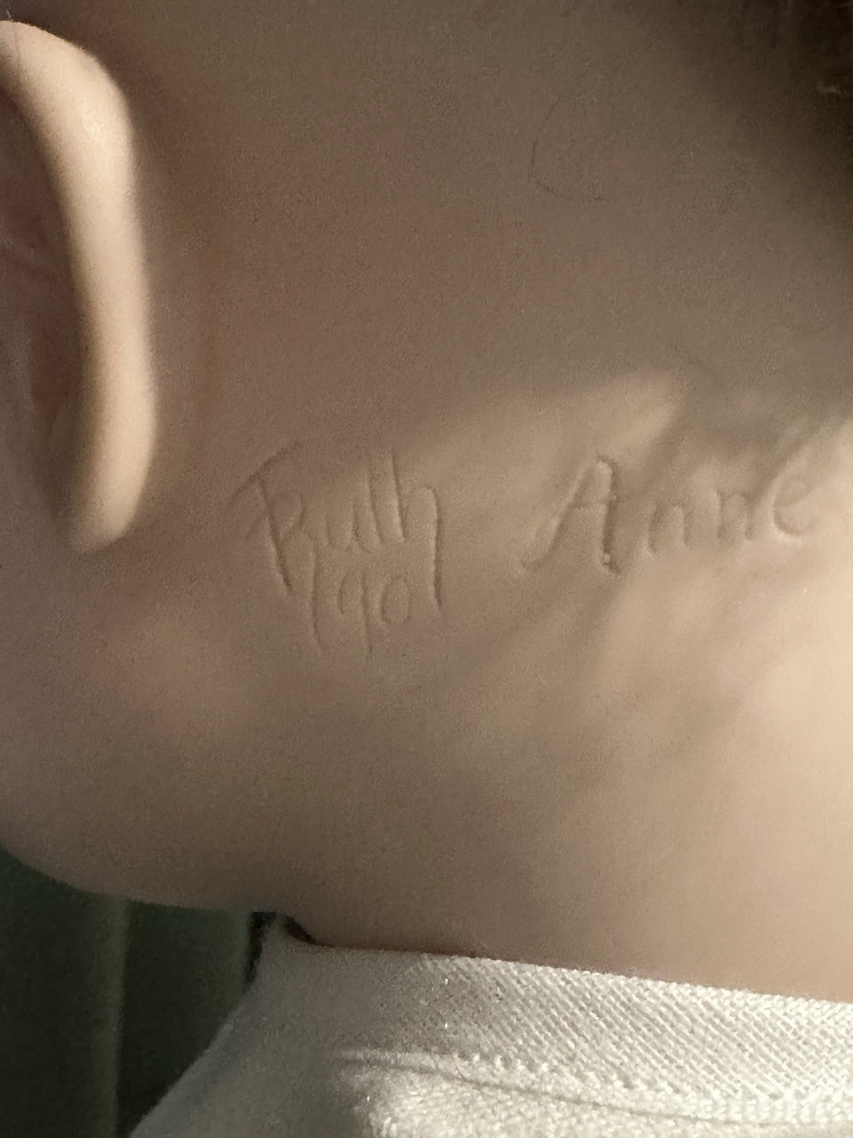 Hard to find Artist porcelain doll by Ruth Treffeisen. She is a limited edition of 100 dolls worldwide!!!! Number 37. Her name is Anne . She has porcelain swivel head, shoulder plate, partial arms and legs below the knees. The rest of her body is stuffed cloth. Beautiful face painting; her hair feels like mohair hair. Signed and numbered on her neck. Comes in a simple (not signed) box and with her COA.