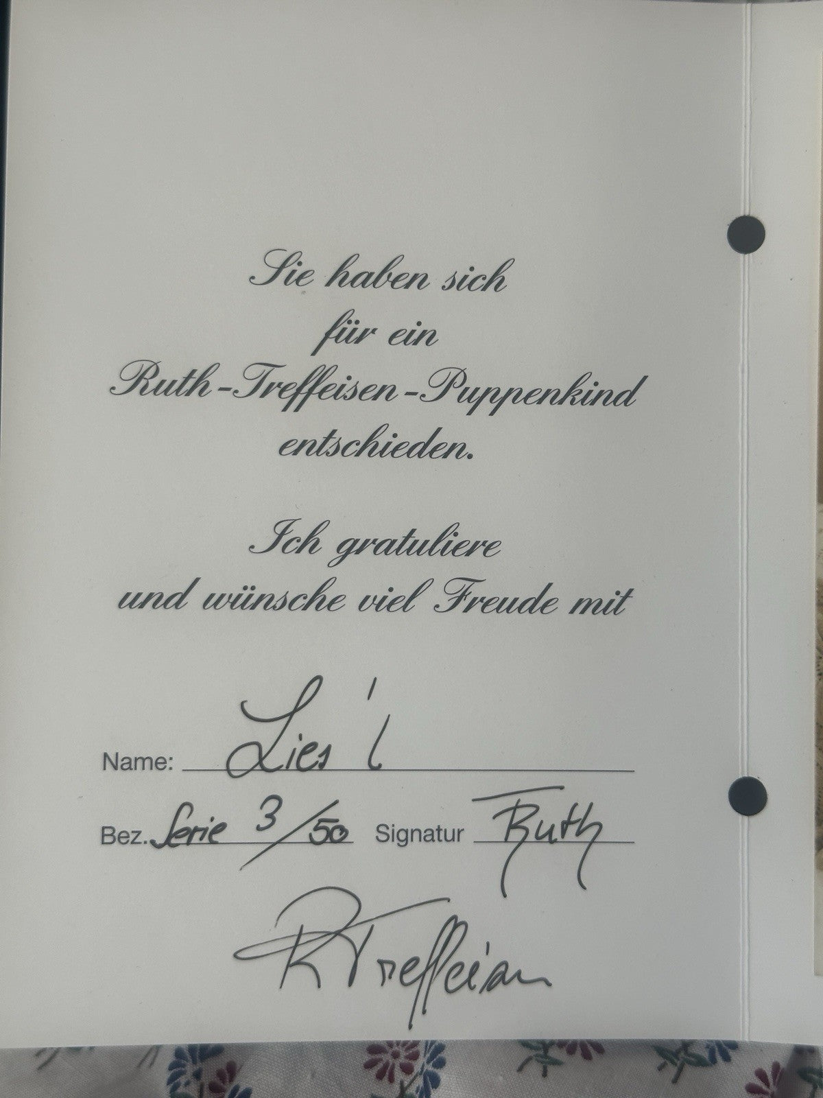 Collectible Artist 32” Porcelain Doll “Lies’l” by Ruth Treffeisen LE 50 COA