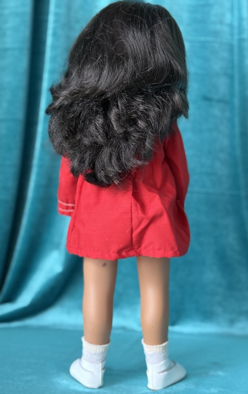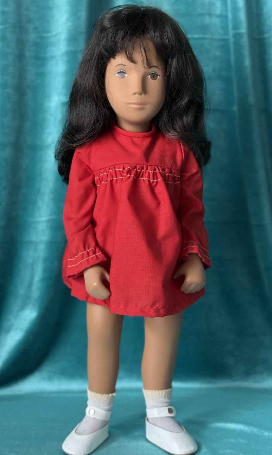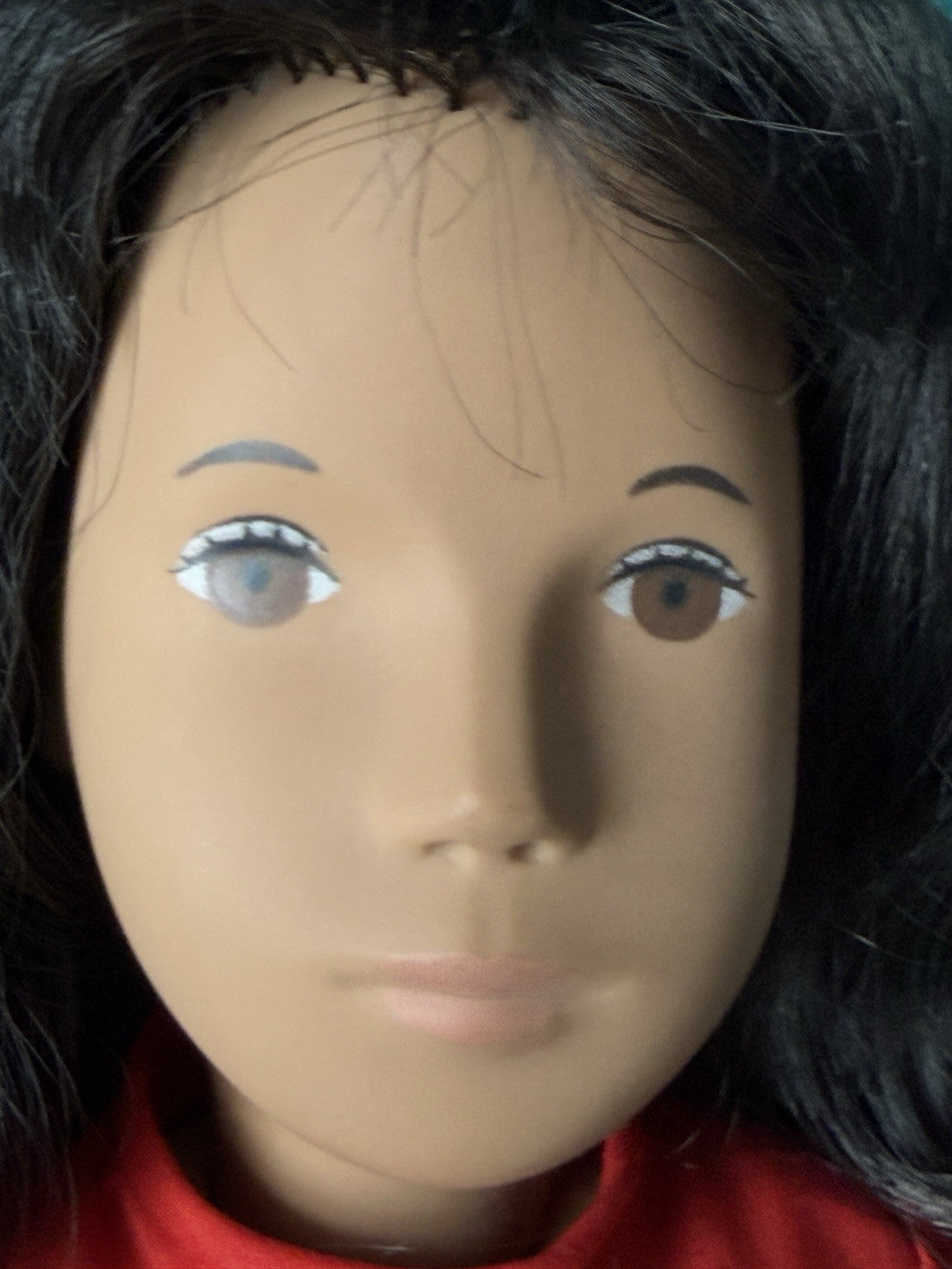 Beautiful Sasha doll from 1960's. Model 104 Sasha Brunette Red dress. She is all made of hard vinyl material. Movable extremities. Comes with box; no tag. Some damage is present to the box. Please look at the photos as they are part of the description.