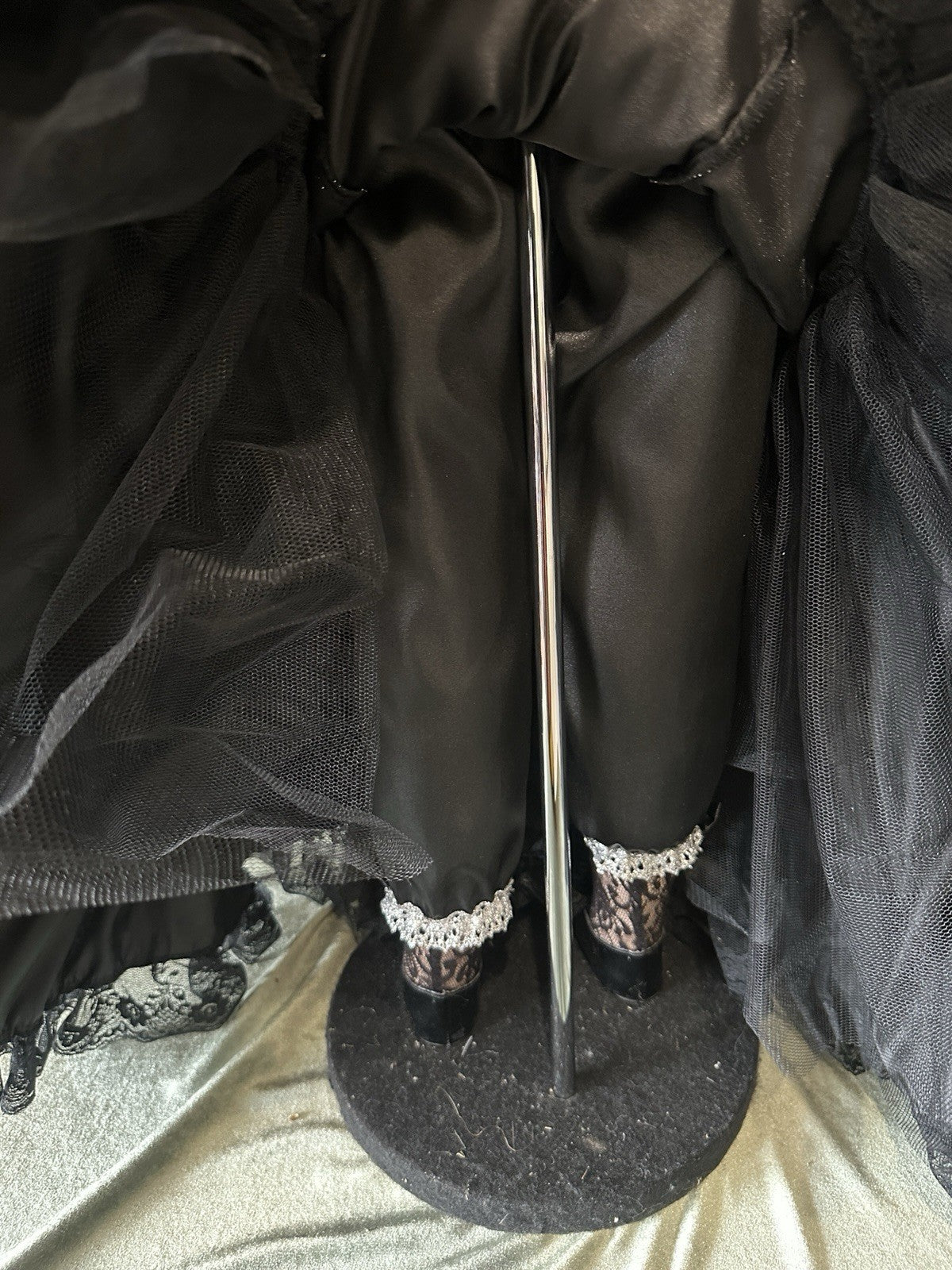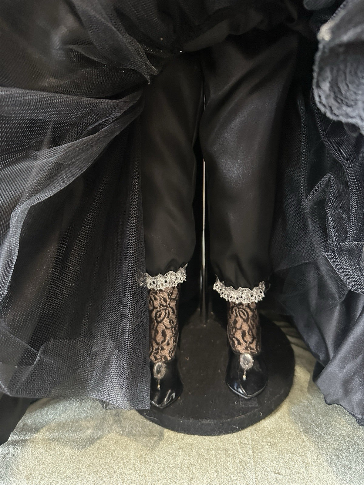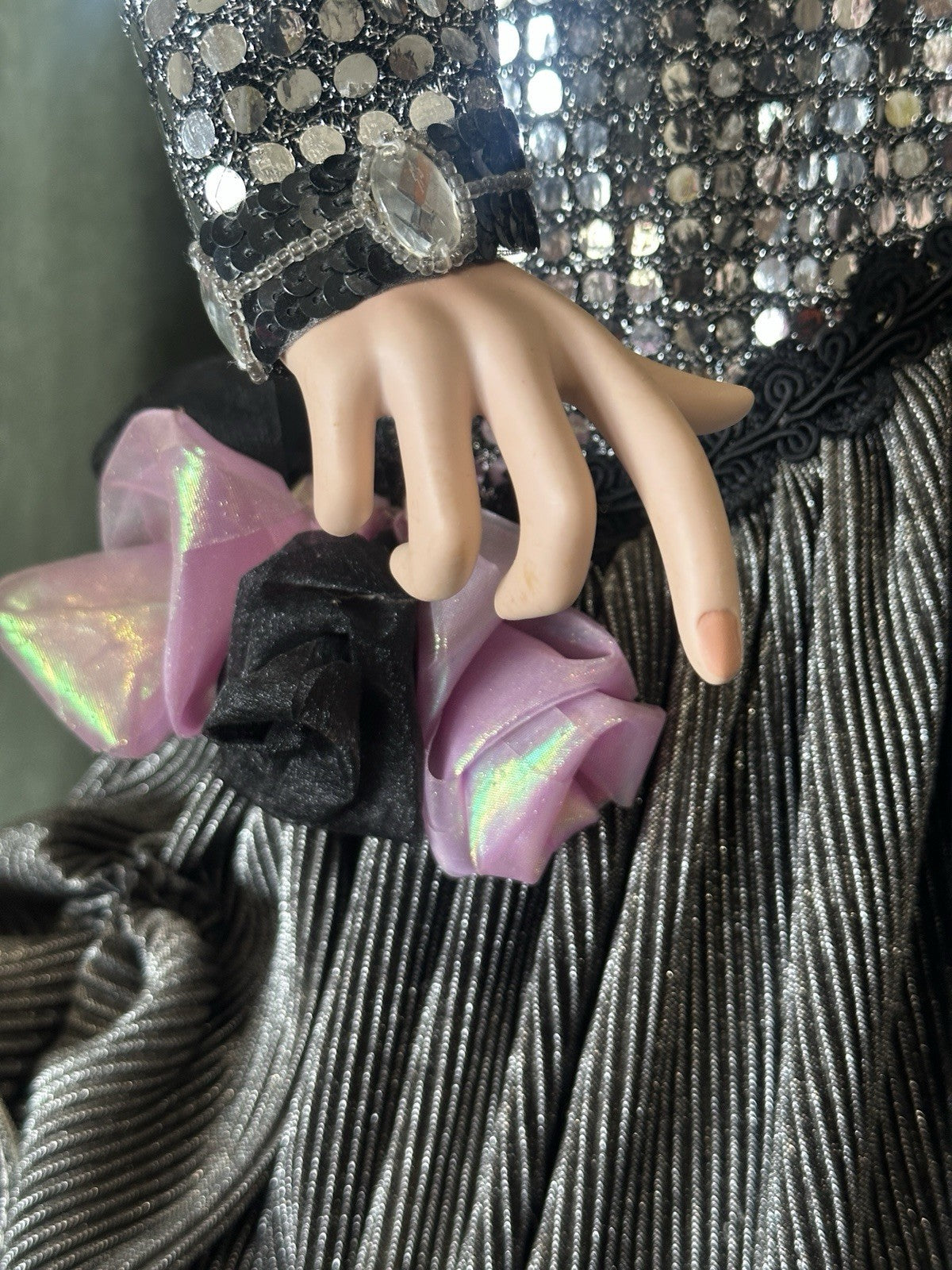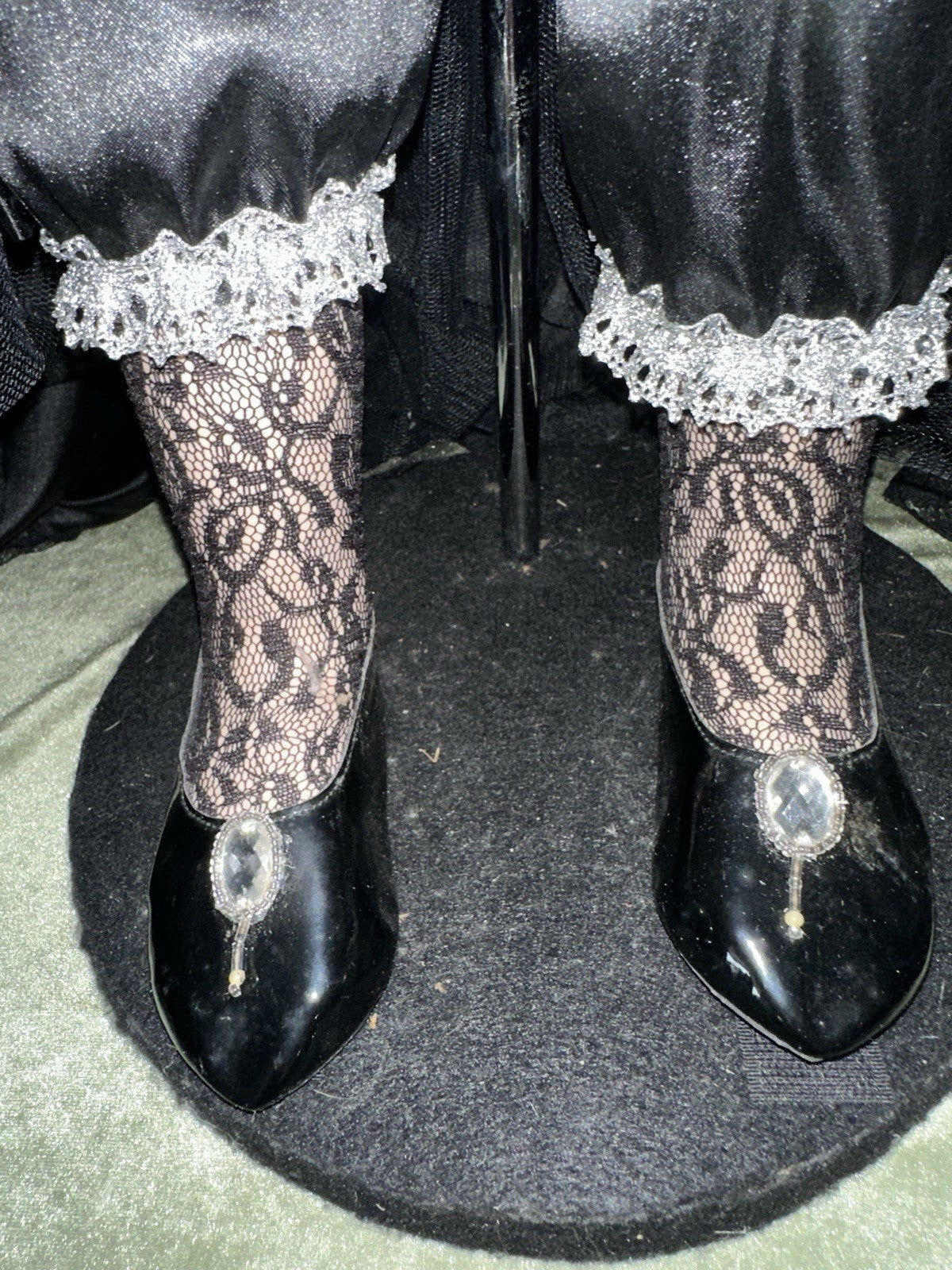 Beautiful large doll by Rustie !!! Doll is approximately 42" tall. Her name is Platinum and she is a limited edition of 700 dolls. Has to be displayed in a standing position only. Comes with a stand that is inserted into her body. She has porcelain head and breast plate, partial arms and legs. The rest of her body is stuffed cloth with armature inside. Beautiful face paint; stationary blue eyes; real upper lashes (missing her lower lashes). Original outfit. We didn't remove her outfit. Stockings are glued to her legs/not removable. No box. Comes with her original COA; no tag. We are not sure if missing any accessories. Please take a look at all photos as they are part of the description.