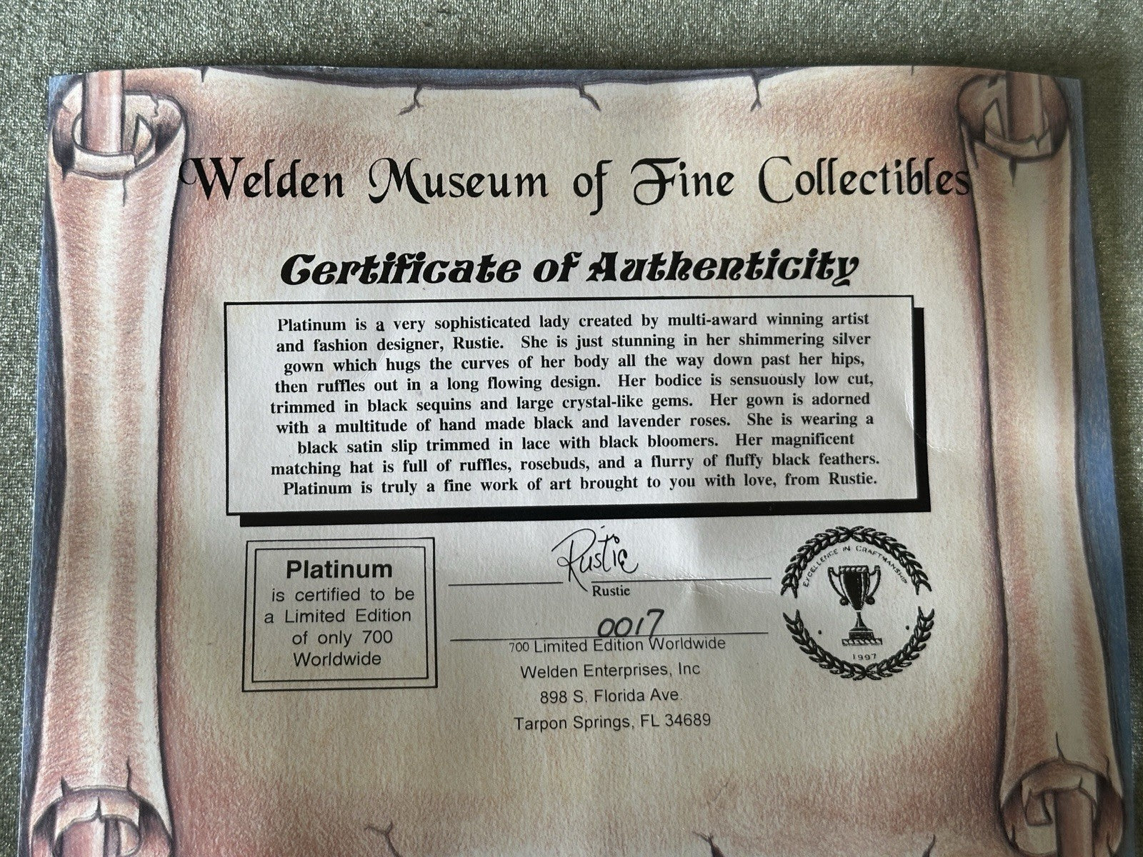 Collectible Large 42” Porcelain Doll “Platinum” by Rustie LE 700 COA/Stand