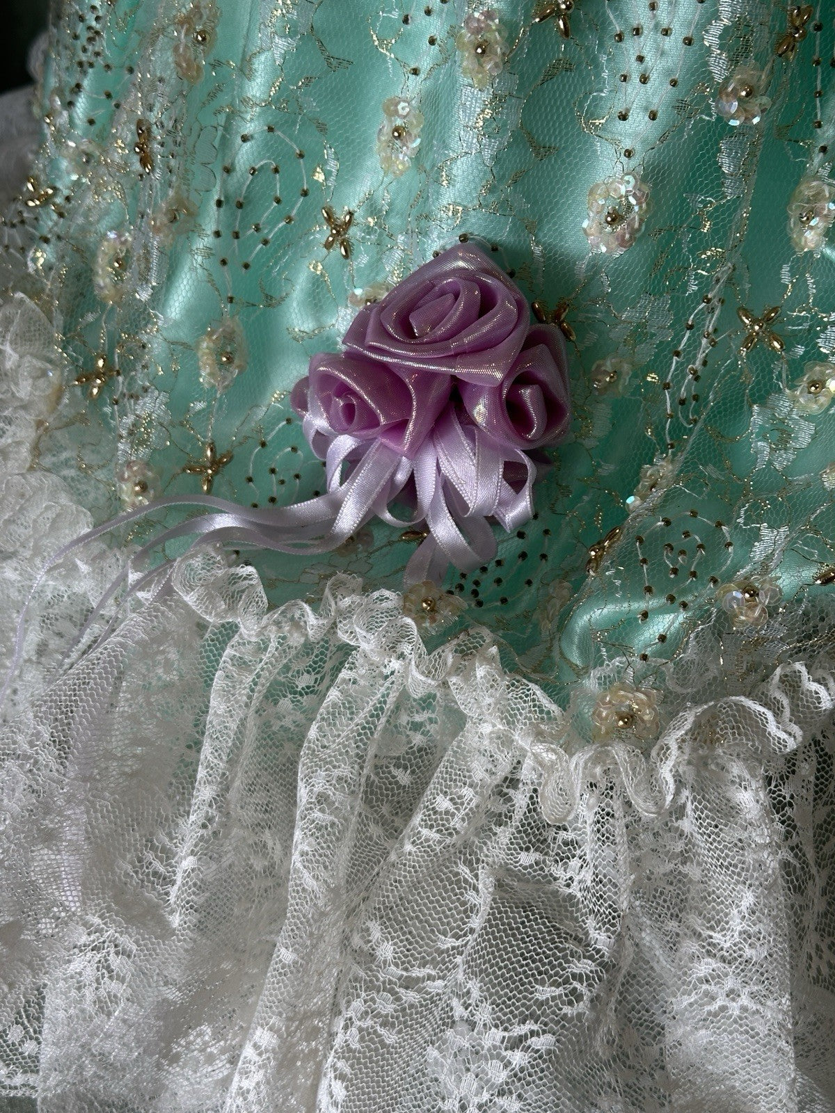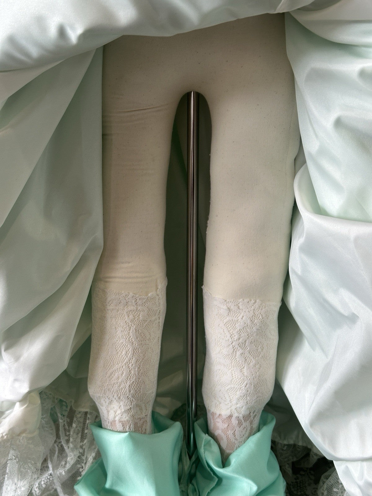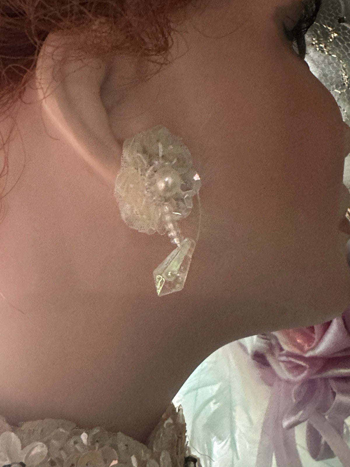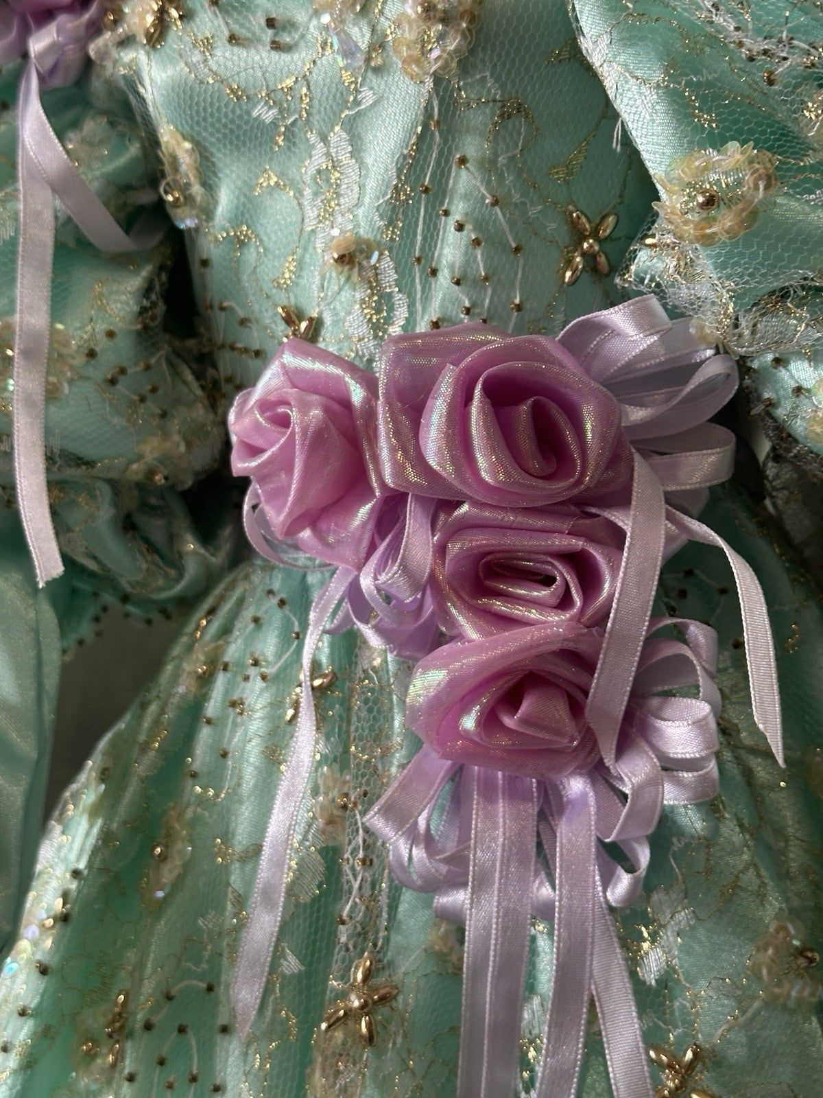 Beautiful large doll by Rustie !!! Doll is approximately 42" tall. Her name is Rustie and she is a limited edition of 2000 dolls. Has to be displayed in a standing position only. Comes with a stand that is inserted in her body. She has porcelain head and breast plate, partial arms and legs. The rest of her body is stuffed cloth with armature inside. Beautiful face paint; stationary green eyes; real upper lashes; missing lashes to one of her eyes. Original outfit. We didn't remove her outfit. Stockings are glued to her legs/not removable. No box. Comes with her COA. We are not sure if missing any accessories.