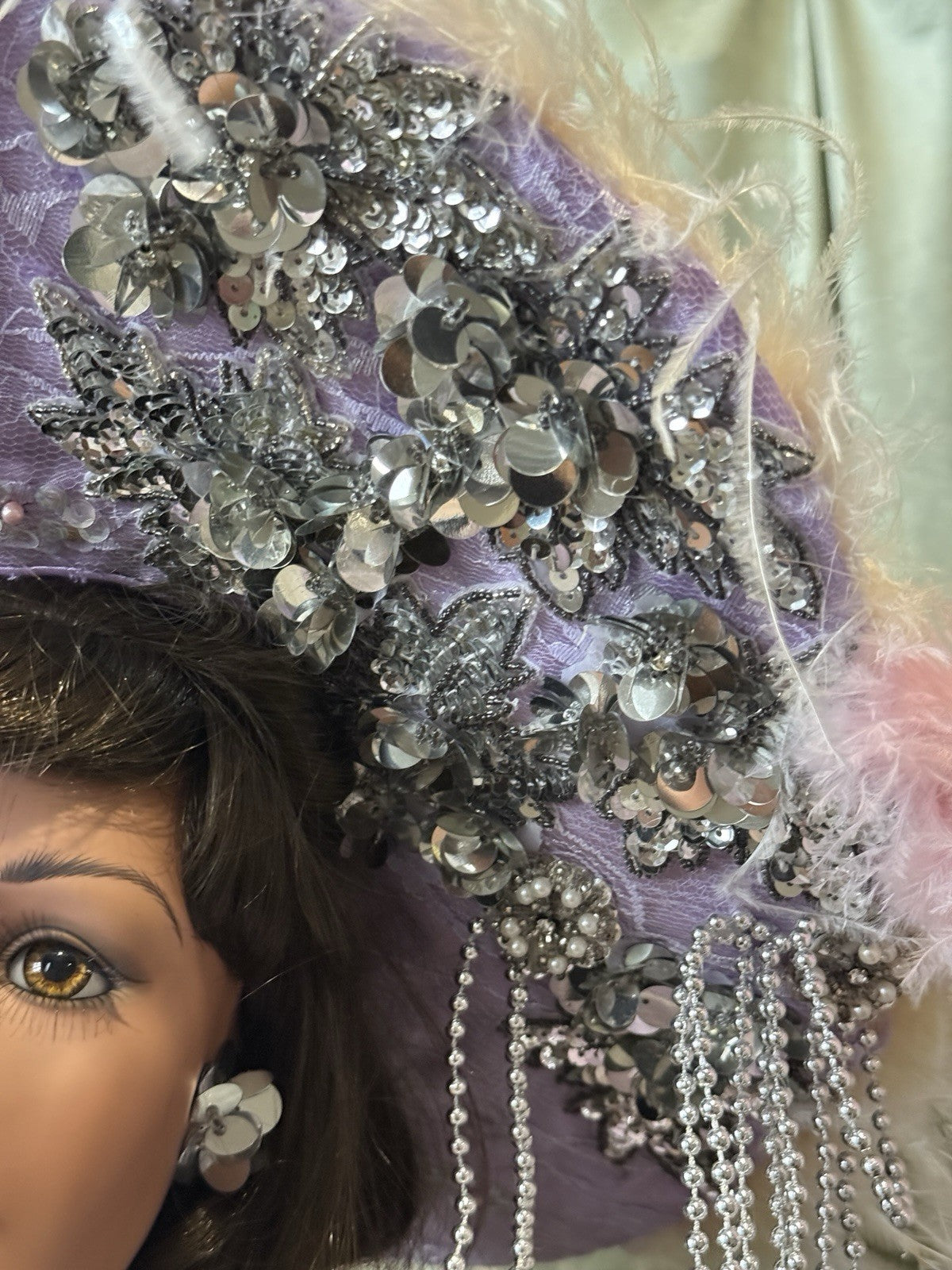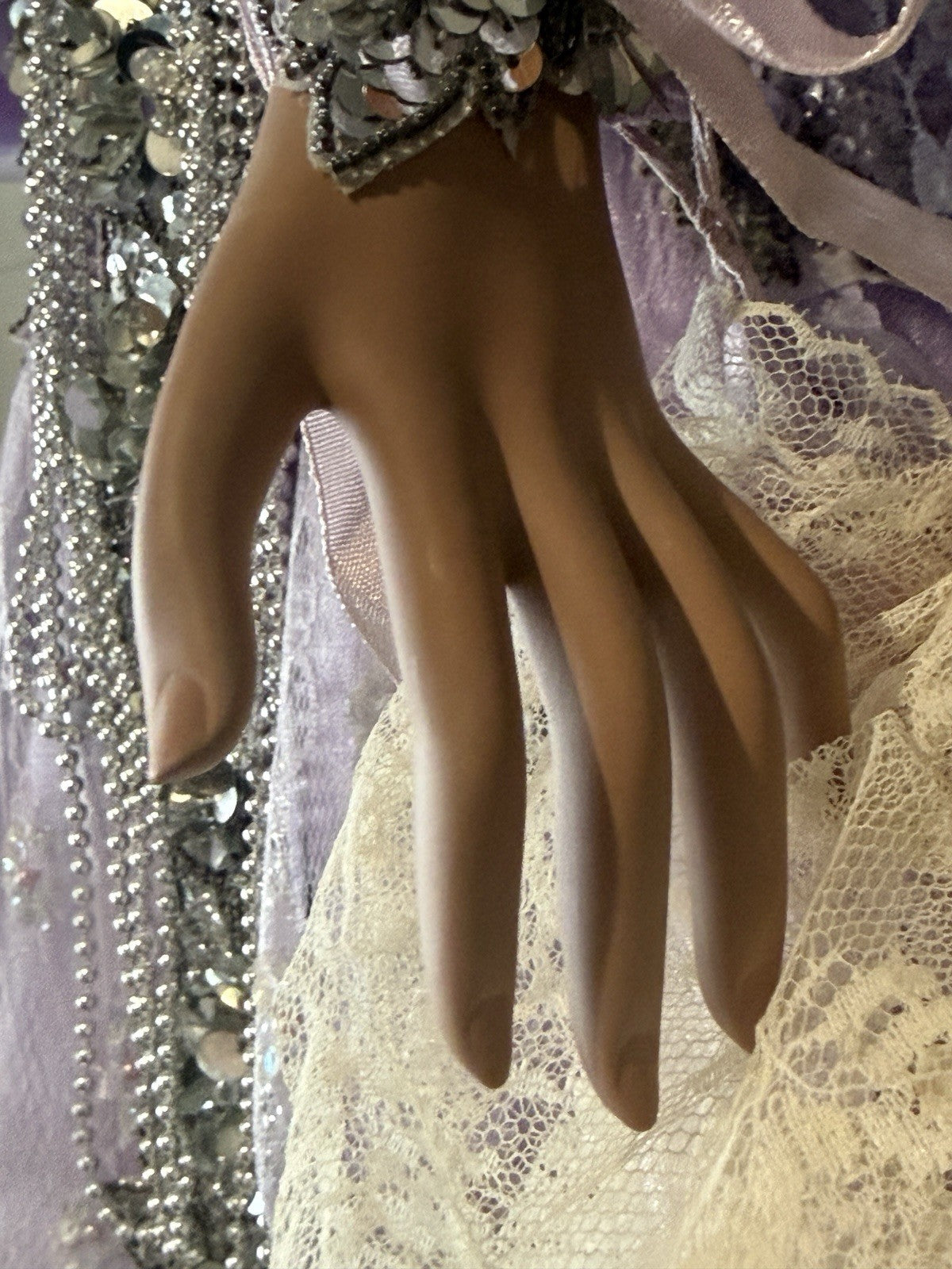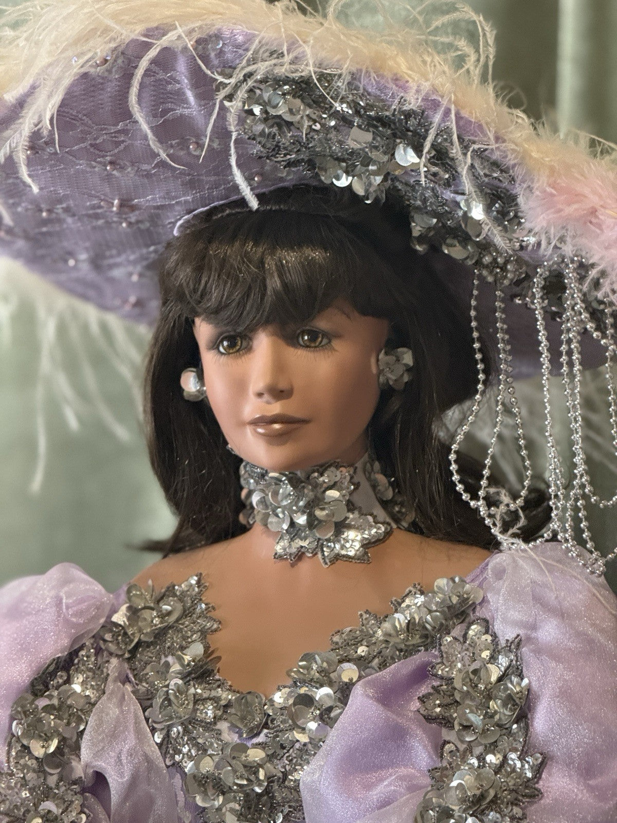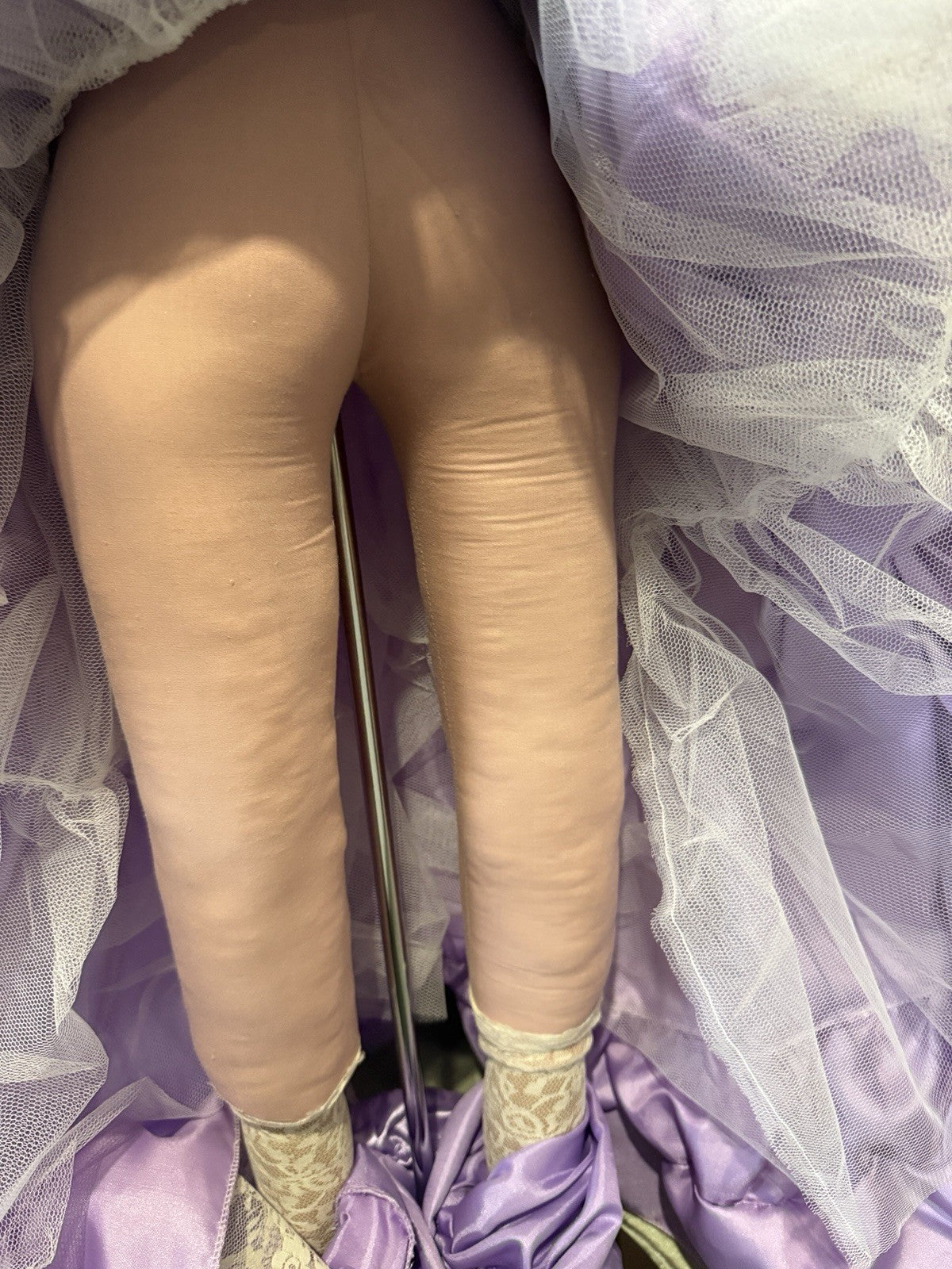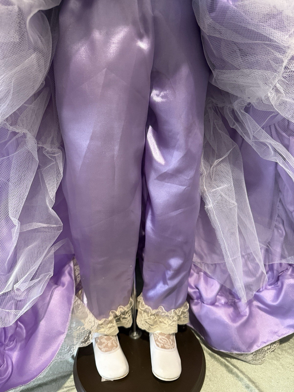 Beautiful large doll by Rustie !!! Doll is approximately 42" tall. Her name is Sterling and she is a limited edition of 1000 dolls. Has to be displayed in a standing position only. Comes with a stand that is inserted into her body. She has porcelain head and breast plate, partial arms and legs. The rest of her body is stuffed cloth with armature inside. Beautiful face paint; stationary brown eyes; real upper and lower lashes. Original outfit. We didn't remove her outfit. Stockings are glued to her legs/not removable. No box. Comes with her COA and tag. Comes with a heart necklace but we are not sure if it's original to this doll; missing some rhinestones. We are not sure if missing any accessories. Please take a closer look at the photos as they are part of the description.