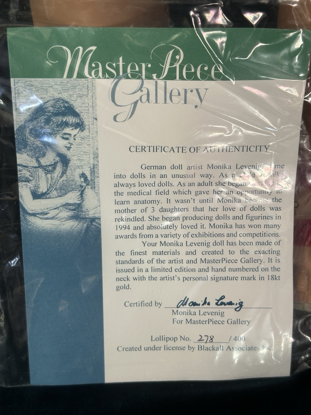 Collectible Porcelain 30” Doll “Lollipop ” by Monika Levenig LE 400 Tag/COA