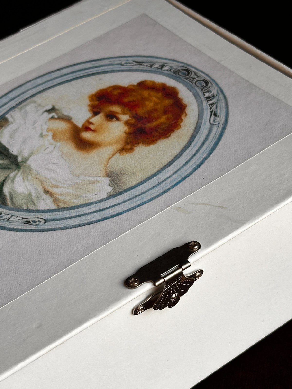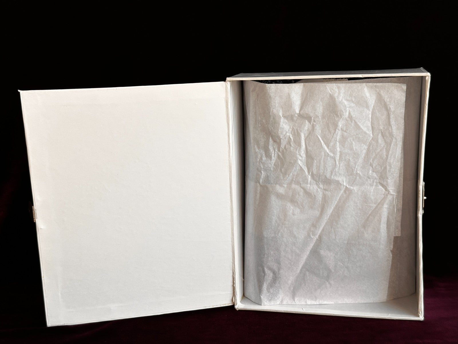 This is beautiful souvenir doll that is coming in original presentation box, which is a little worn. Everything inside the box is in great condition. Please refer to the pictures for more details. The doll is approximately 6.75" tall.