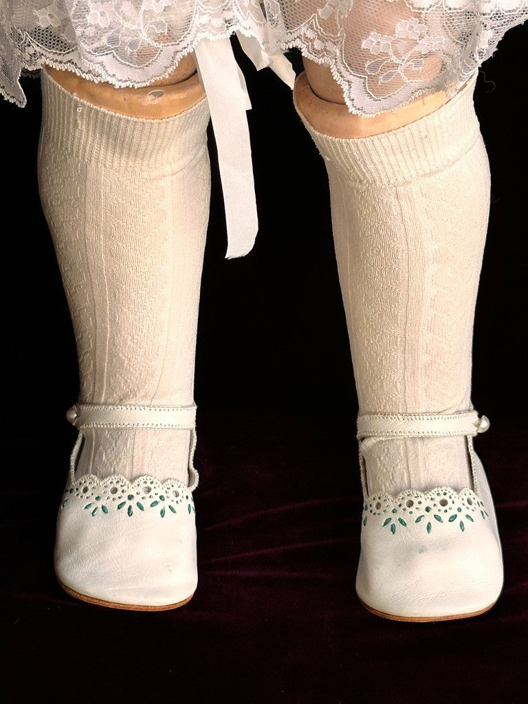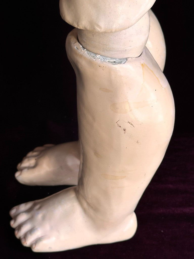 Absolutely gorgeous, very large doll in very good condition. The doll has original working sleepy eyes. The head is free of damage. No hairlines, cracks, or chips to the bisque. There are some hair and glue residues. Production kiln crack behind the left ear.