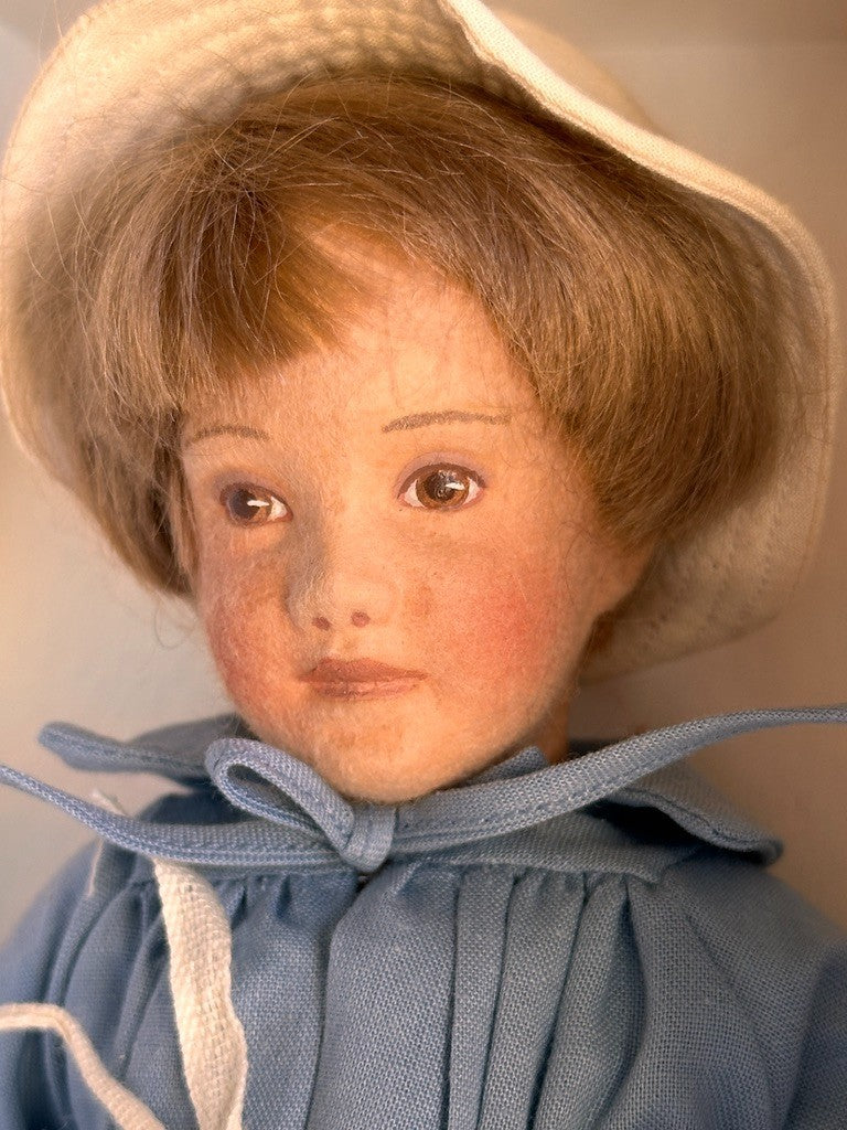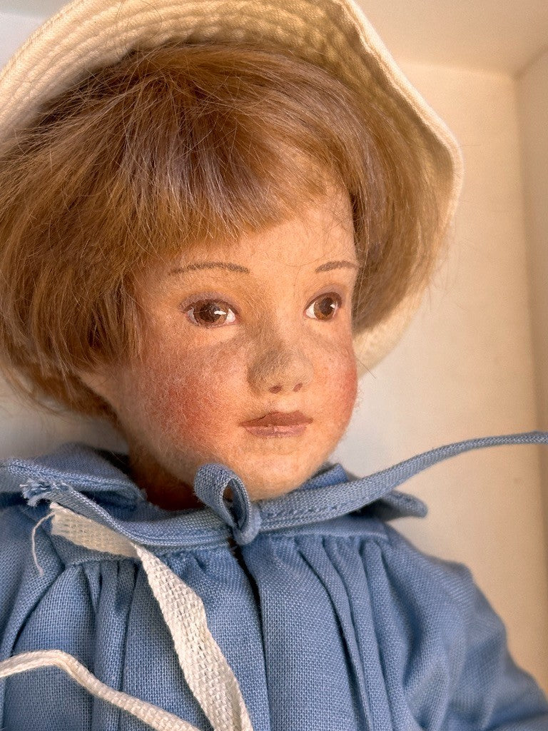 Cute boy doll in a very good condition and clean. Comes in original box with certificate. The doll looks like was never displayed. Light wear to the box. Please refer to the pictures for more details.