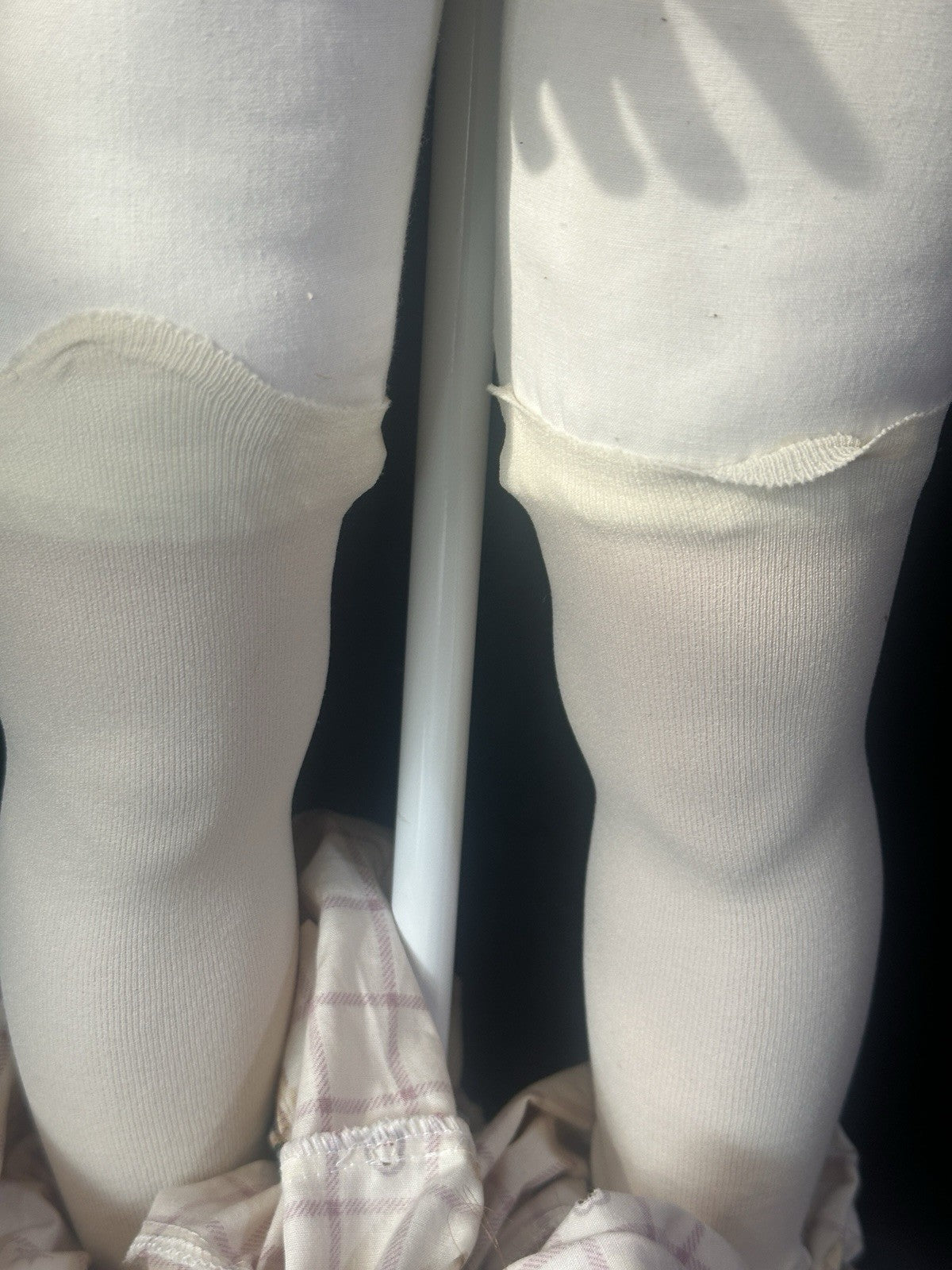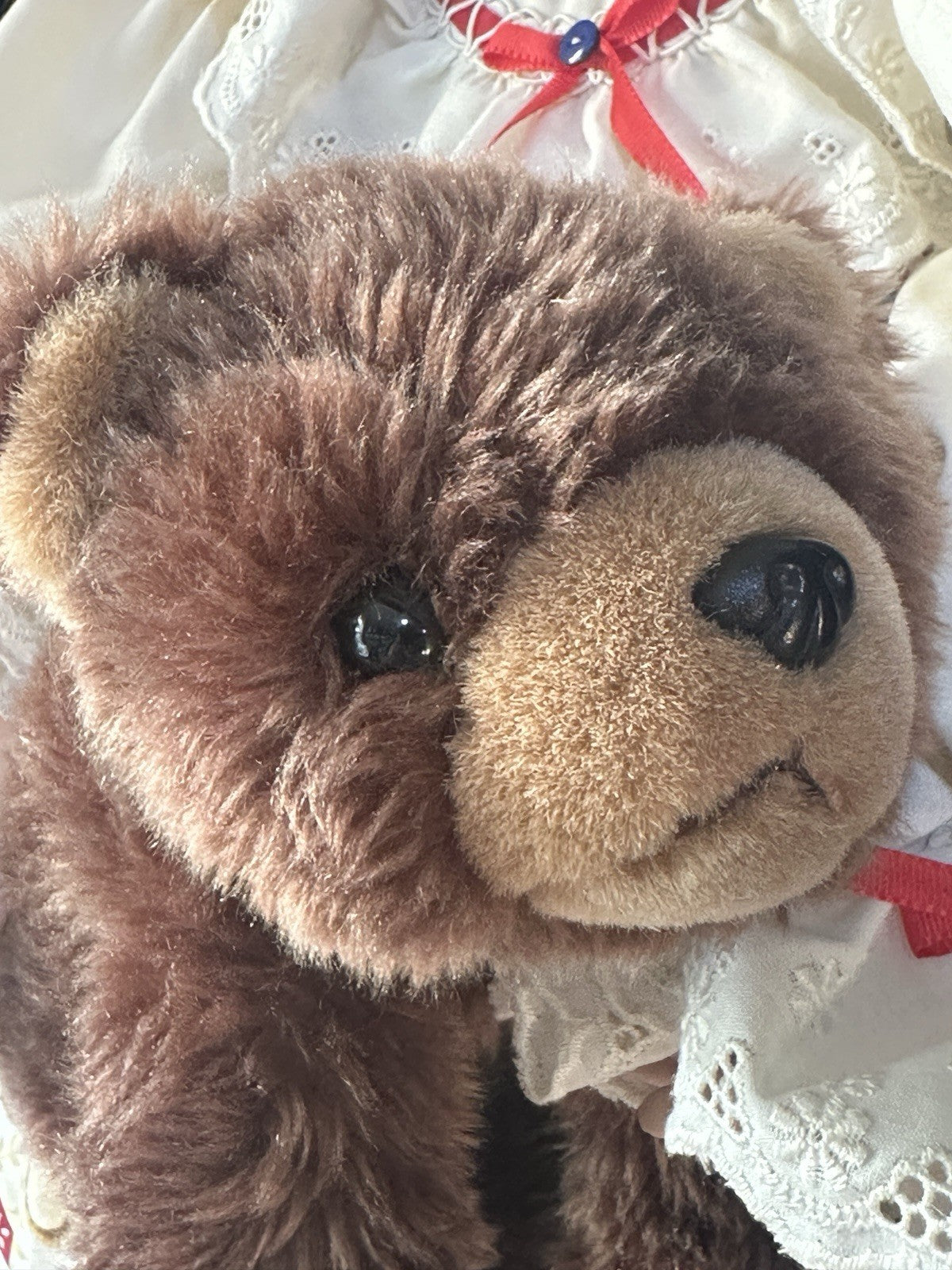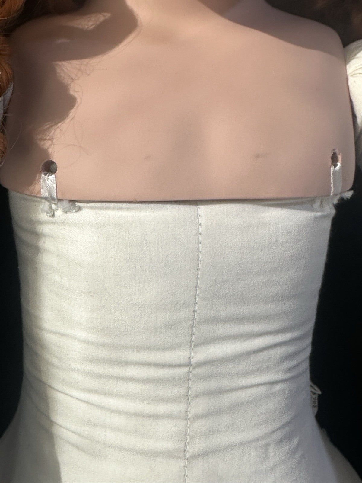 Beautiful large doll by Donna Rubert!!! Doll is approximately 29" tall. Abbie is a limited edition of 100 dolls. Has to be displayed in a standing position only. She has porcelain head and breast plate, partial arms and legs. The rest of her body is stuffed cloth with armature inside which allows. Marked on the back of her head and breast plate (see photo). Beautiful face paint; stationary blue eyes; real upper and lower lashes. Original outfit; some stains/holes might be present. Her stockings are glued to her legs/not removable. No box/COA. Comes with her original teddy bear, glasses and tag. Comes with stand.