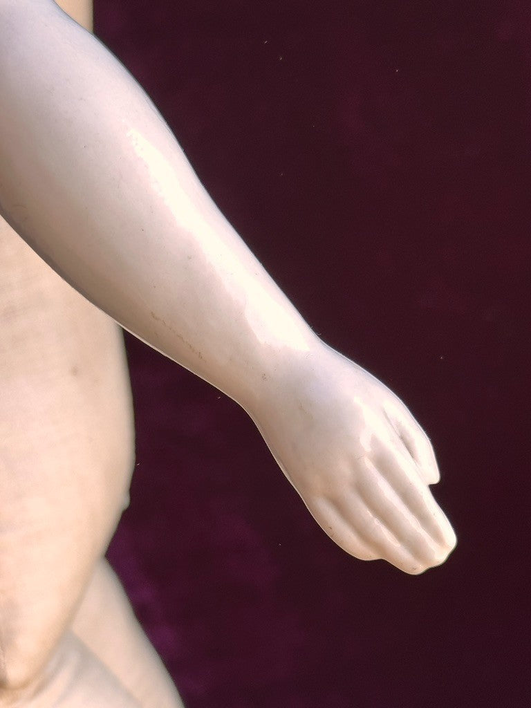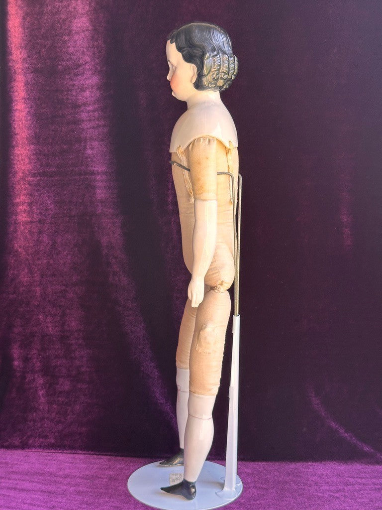 Large Antique German 23" Greiner Style Exposed Ears China Head Doll