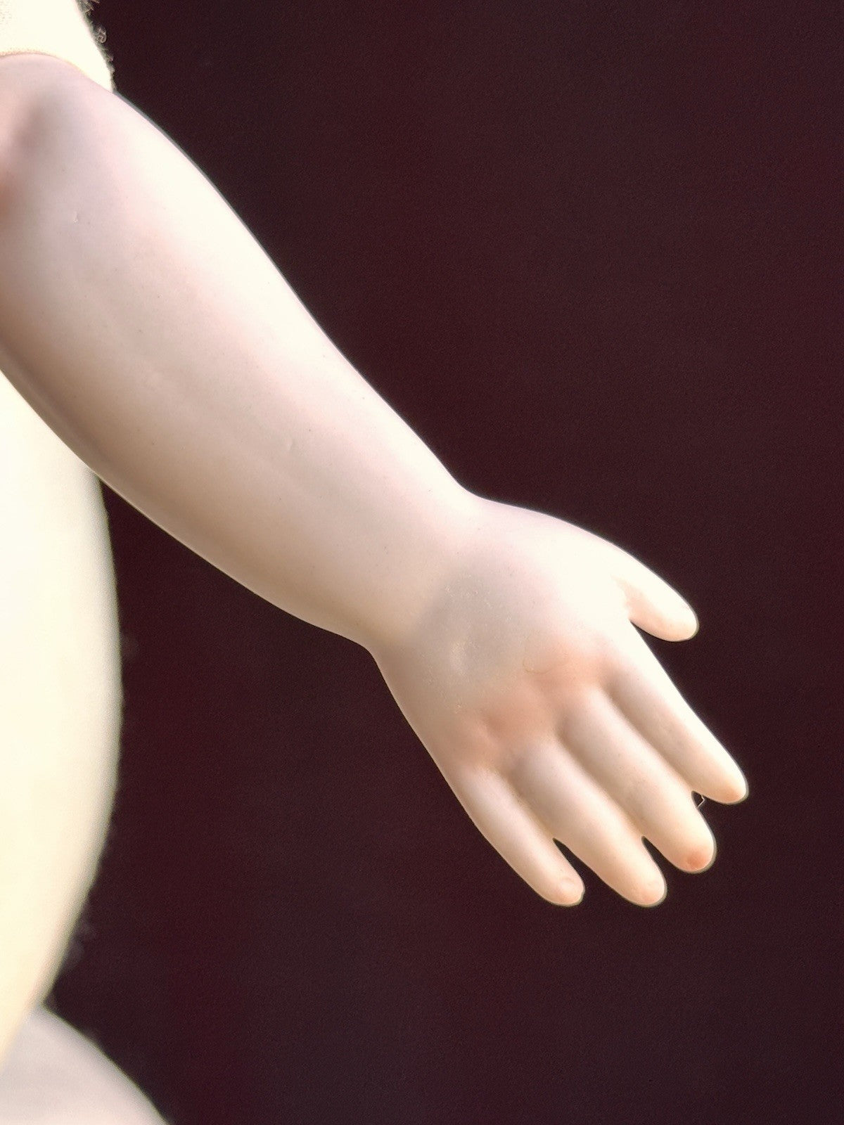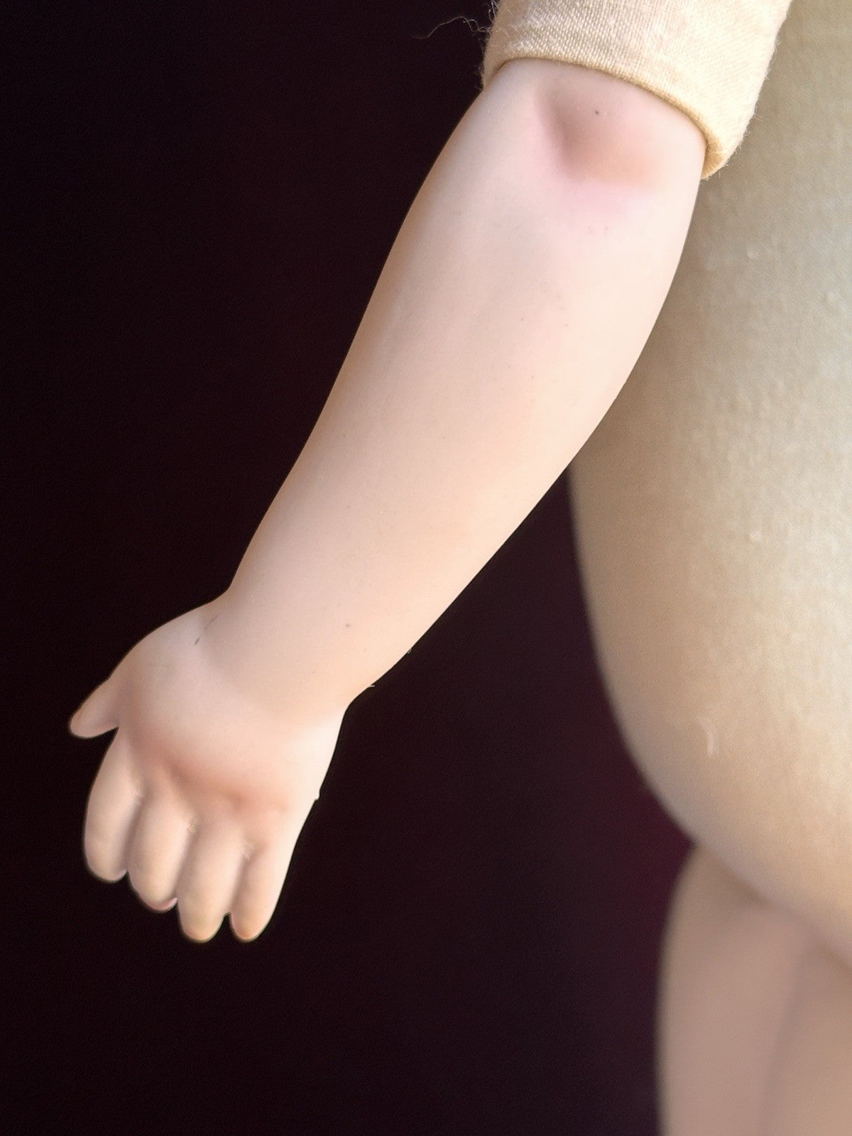 The bisque lower arms and legs are in good condition, and the body is clean.