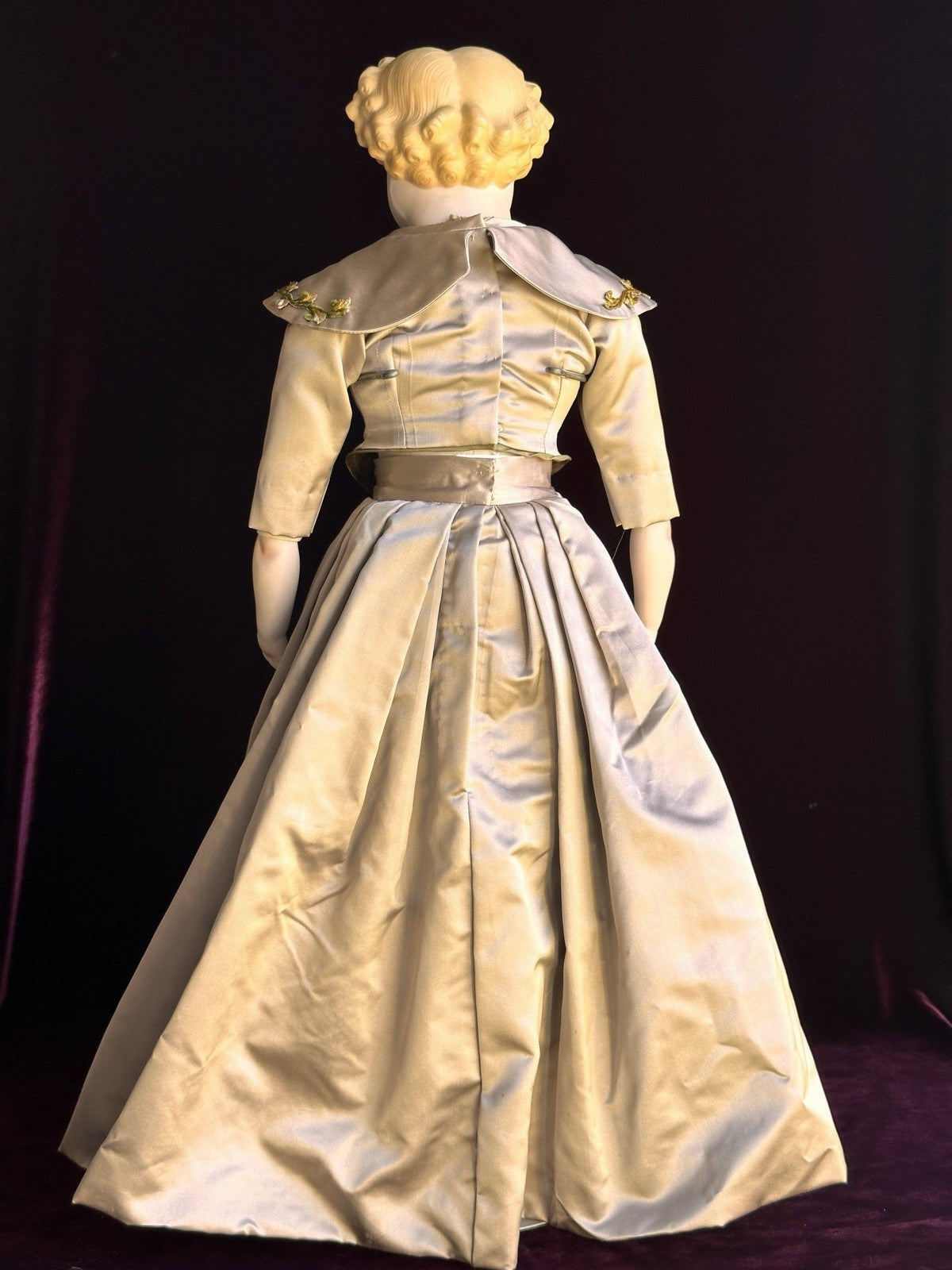The doll is dressed in beautifully made clothing that remains in great condition.